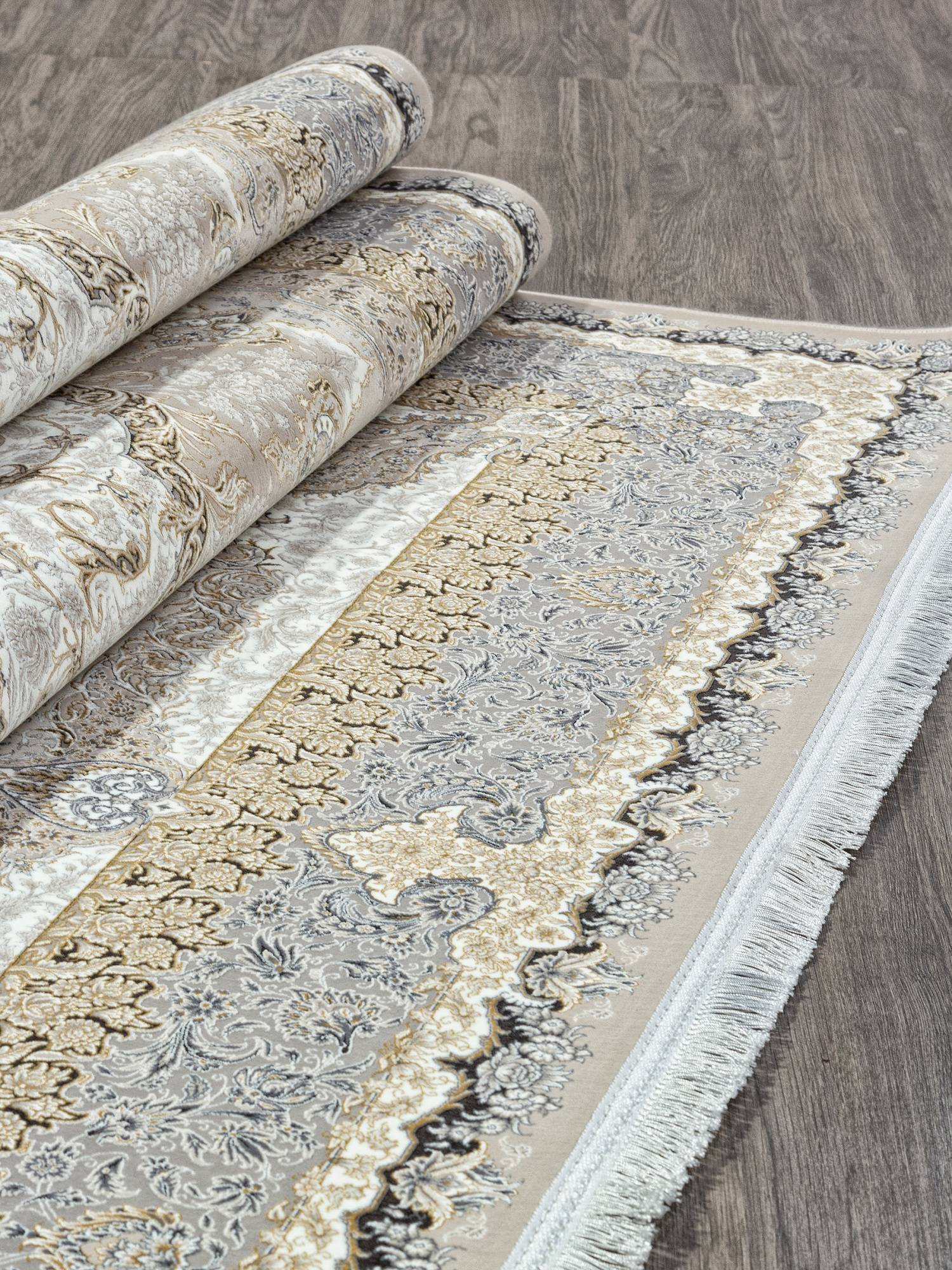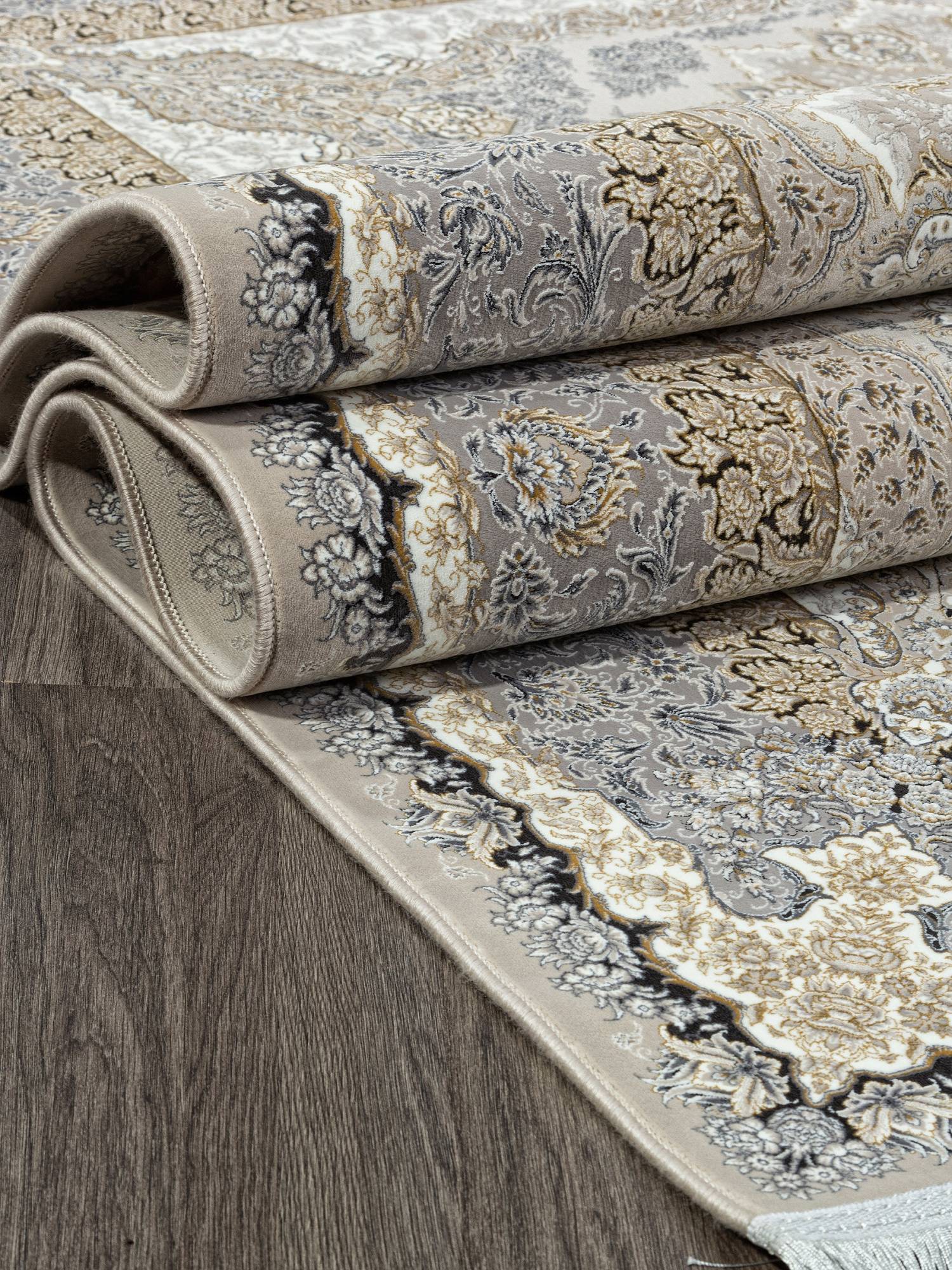Нейтральная расцветка в серых, кремовых и бежевых тонах, детализированный рисунок в классическом стиле и высокое качество изготовления делают этот ковер незаменимым украшением для любого современного интерьера.