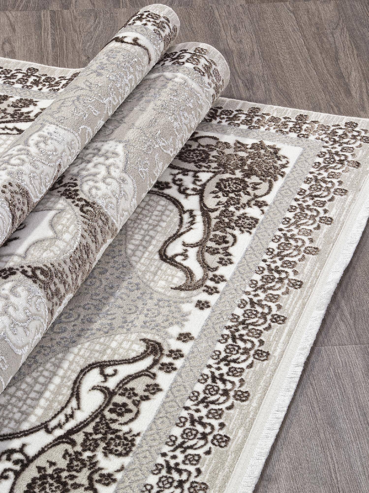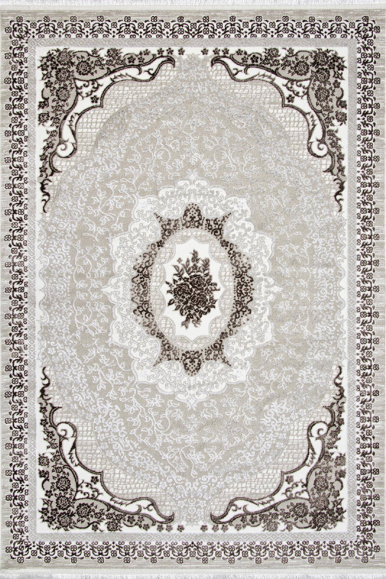 Оригинальный и стильный ковер в классическом стиле и расцветке в кремовых и серых тонах. Это ковровое изделие станет элегантным дополнением к любому интерьеру.