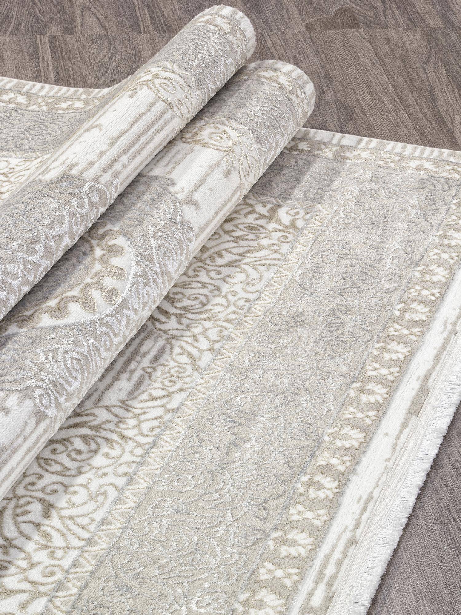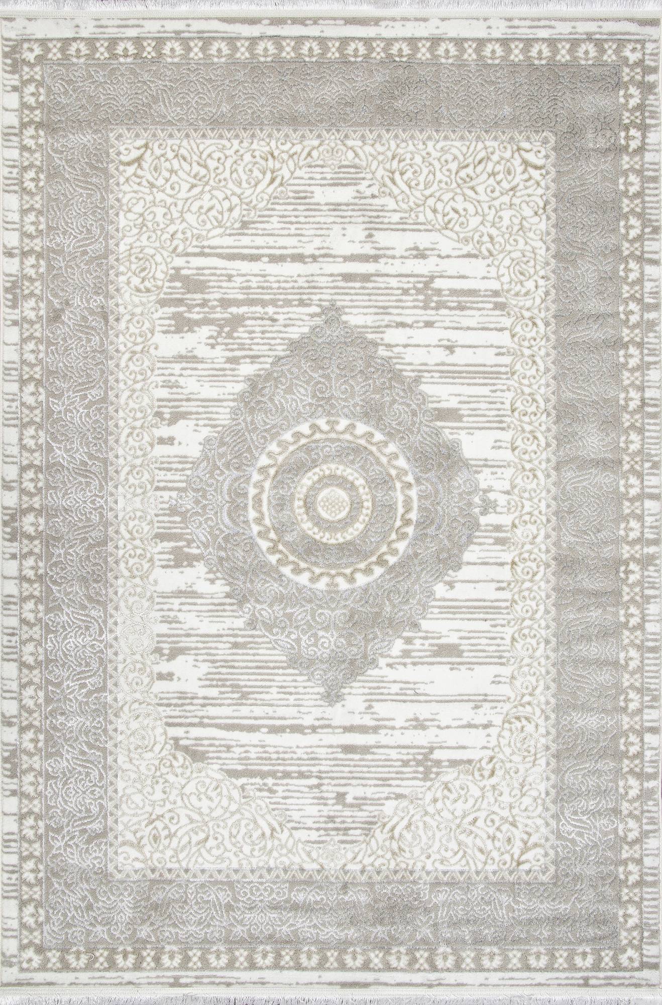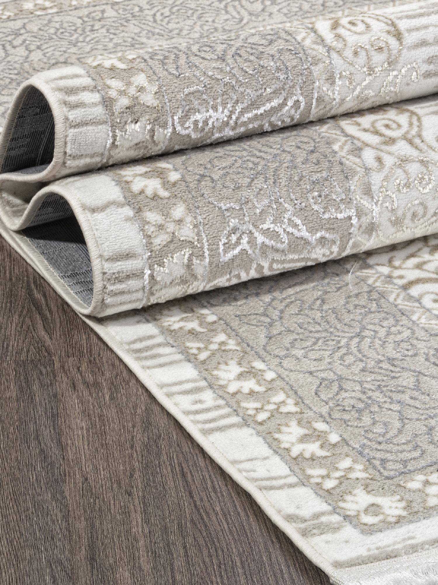 Оригинальный, элегантный ковер в классическом стиле в серо-кремовой цветовой палитре. Такой ковер станет хорошим украшением для интерьера гостиной или зала.