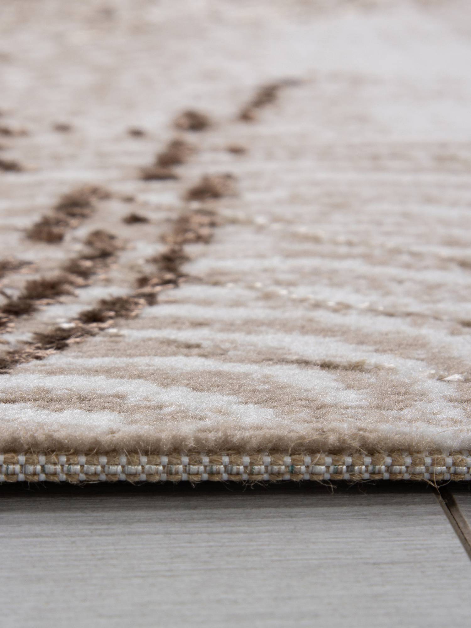 Сочетание кремового, бежевого и коричневых оттенков в абстрактном рисунке, а также высокое качество изготовления позволяют этому ковру стать хорошим украшением для интерьера вашего дома.
