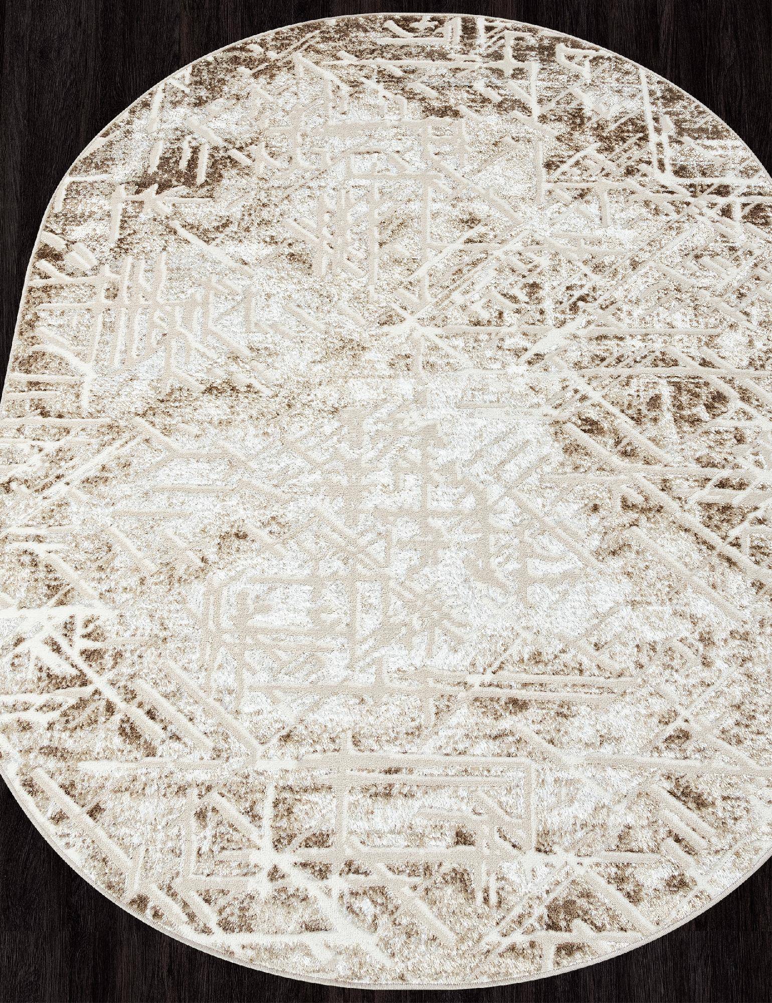 Стильный и оригинальный овальный ковер в кремово-бежевой расцветке. Этот ковер утеплит и украсит любой современный интерьер.