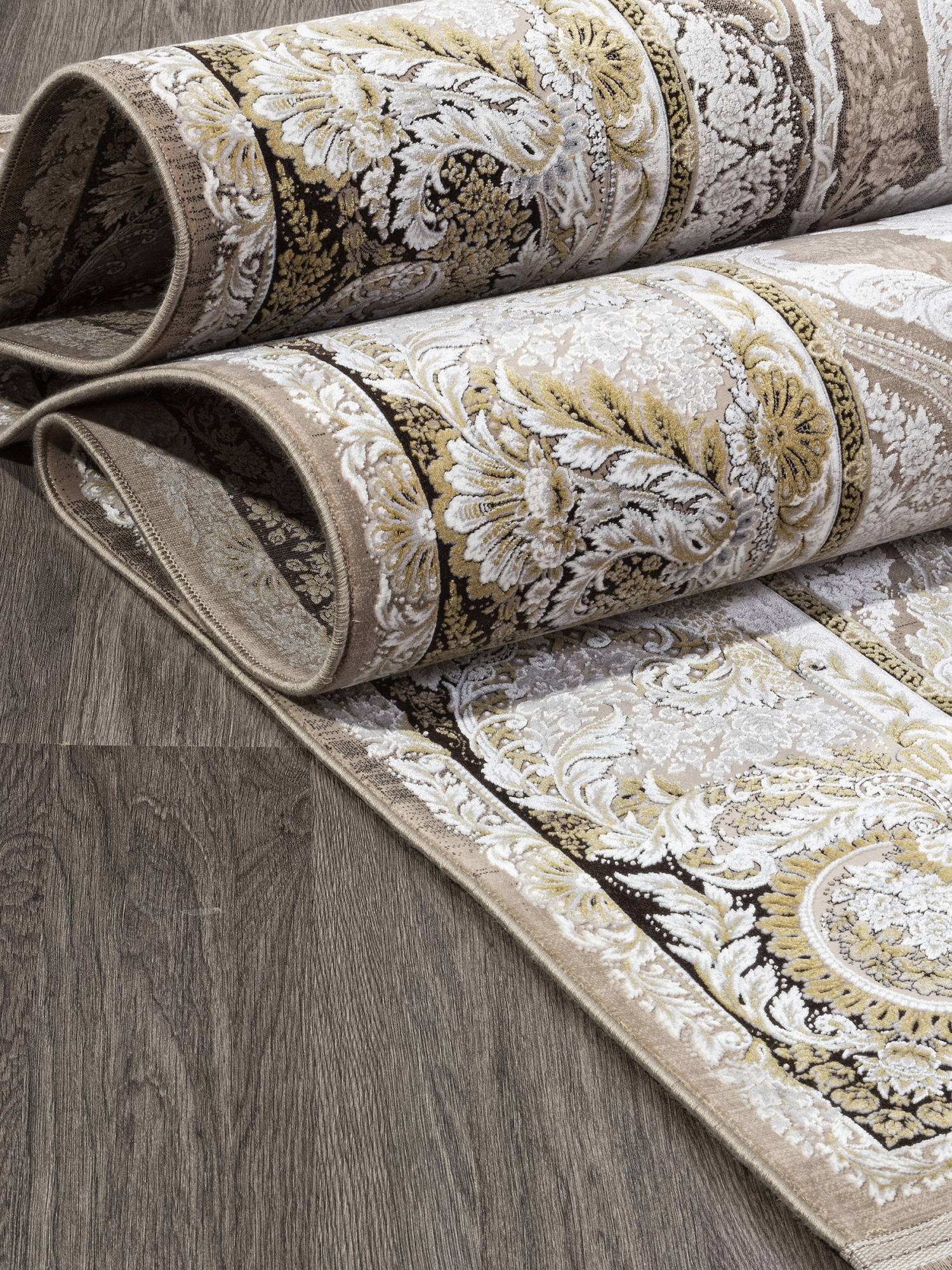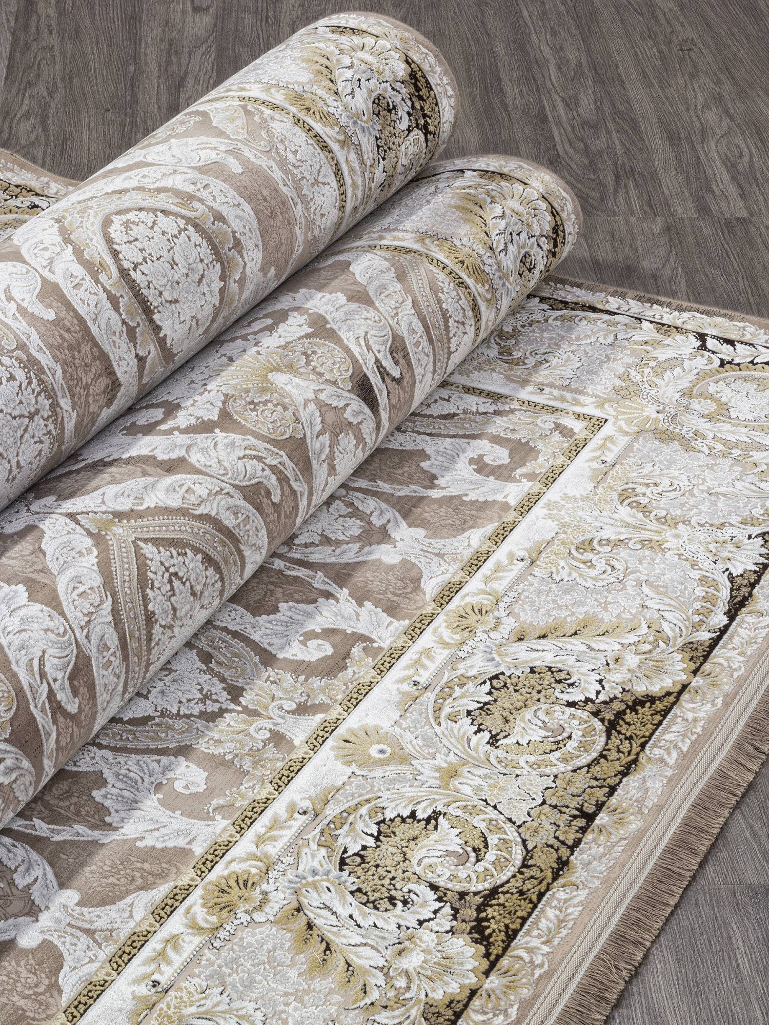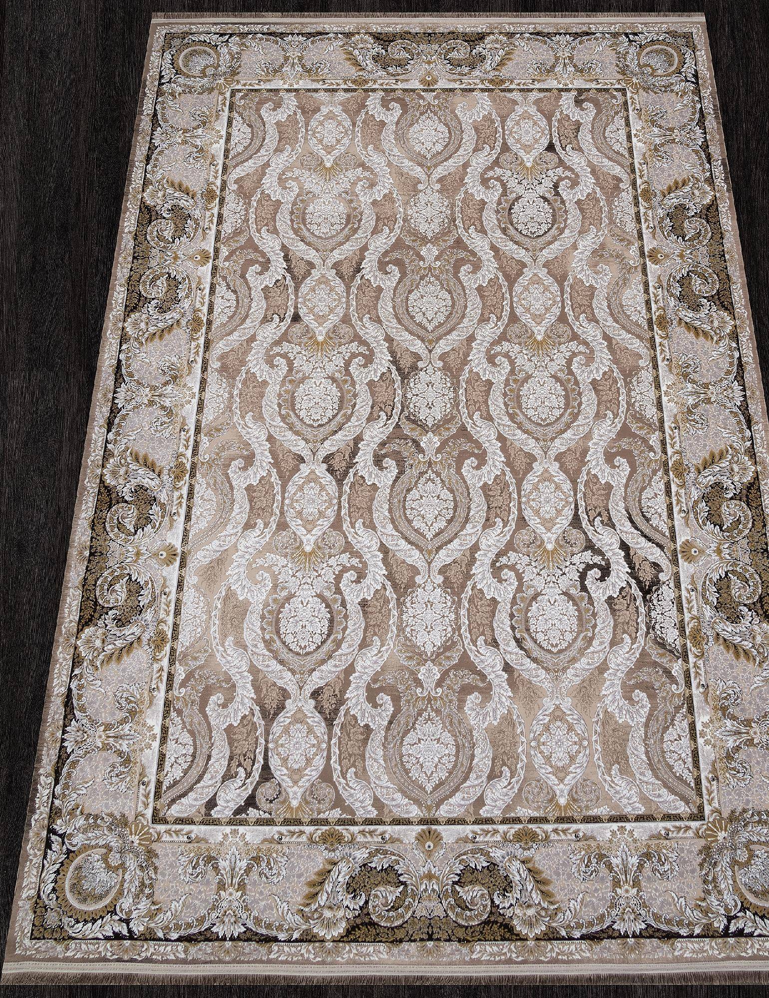 Интересный ковер в серо-бежевой расцветке, детализированный орнамент и приятный дизайн этого ковра станет отличным украшением для интерьера вашего дома.