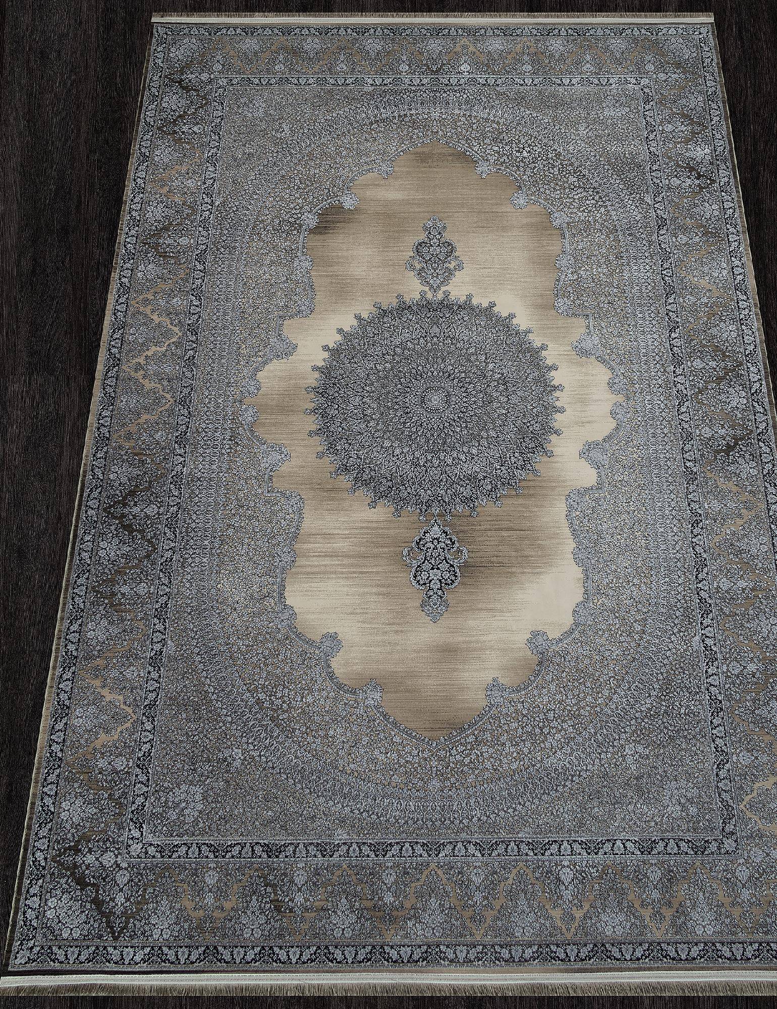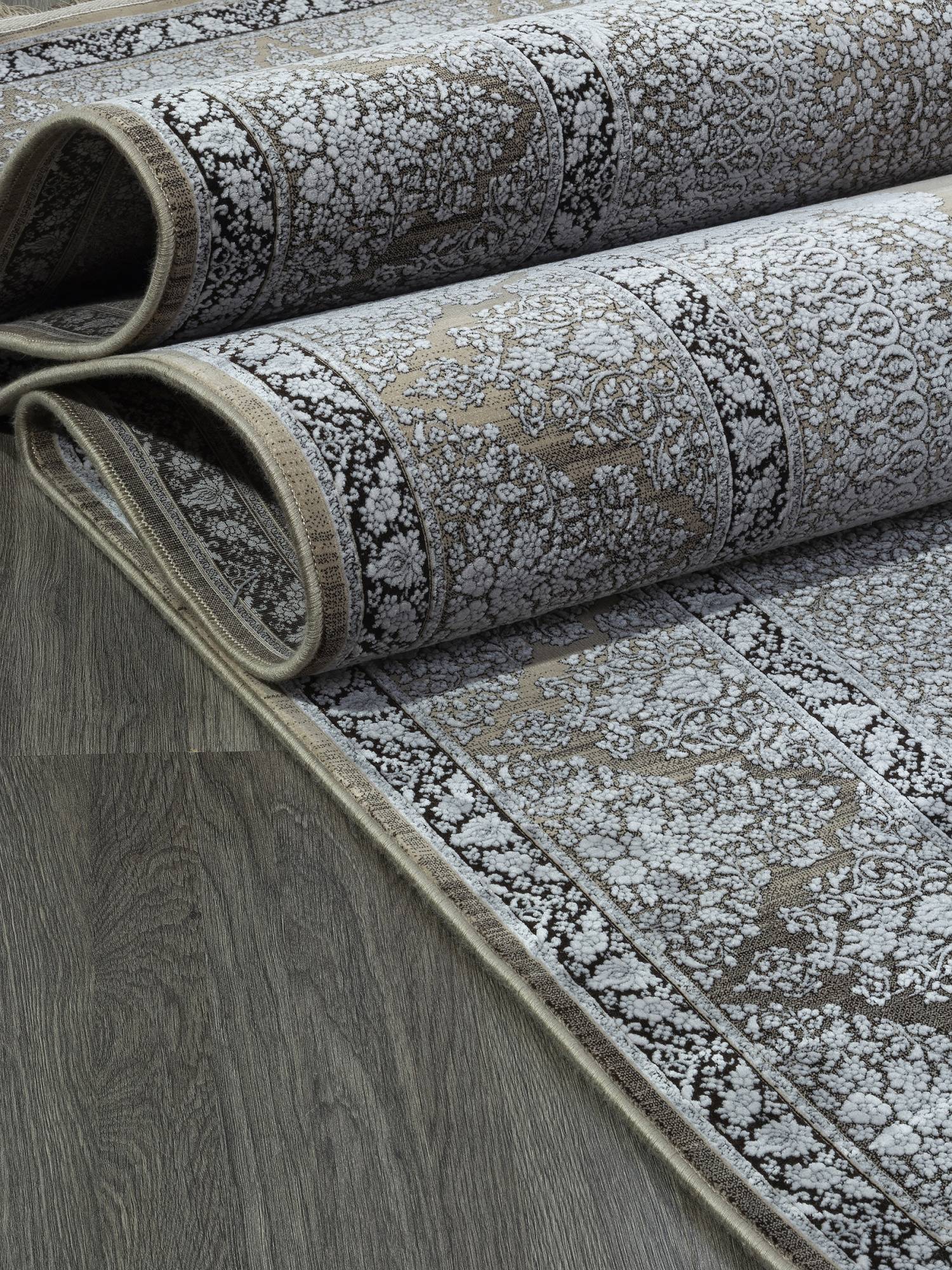 Отличная расцветка в сером, кремовом и бежевом тоне. Детализированный орнамент и стильный дизайн позволяют этому ковру стать красивым украшением для интерьера вашего дома.