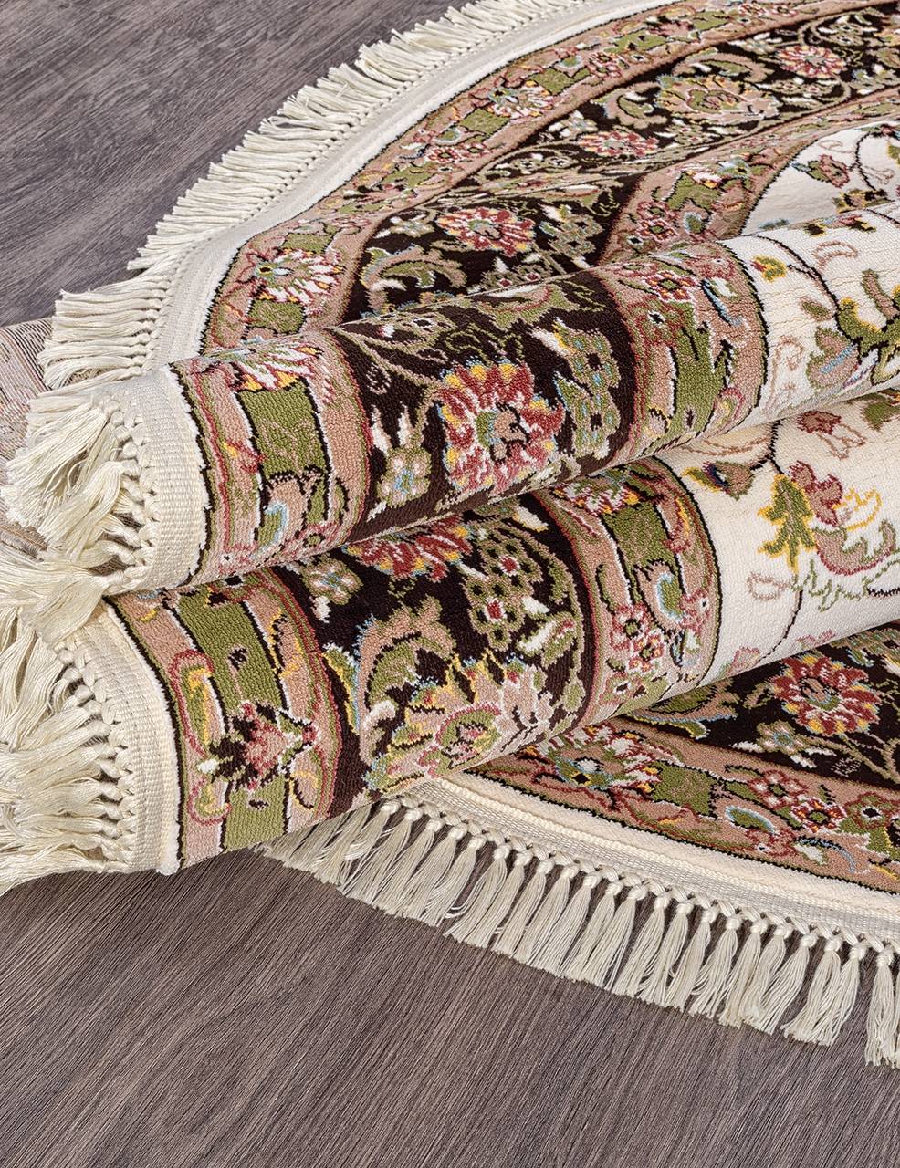Светлый, кремовый, фон и темный бордюр в коричневом тоне, а также детализированный орнамент в классическом стиле с растительными элементами делают из этого ковра хорошее украшением для любого современного интерьера.