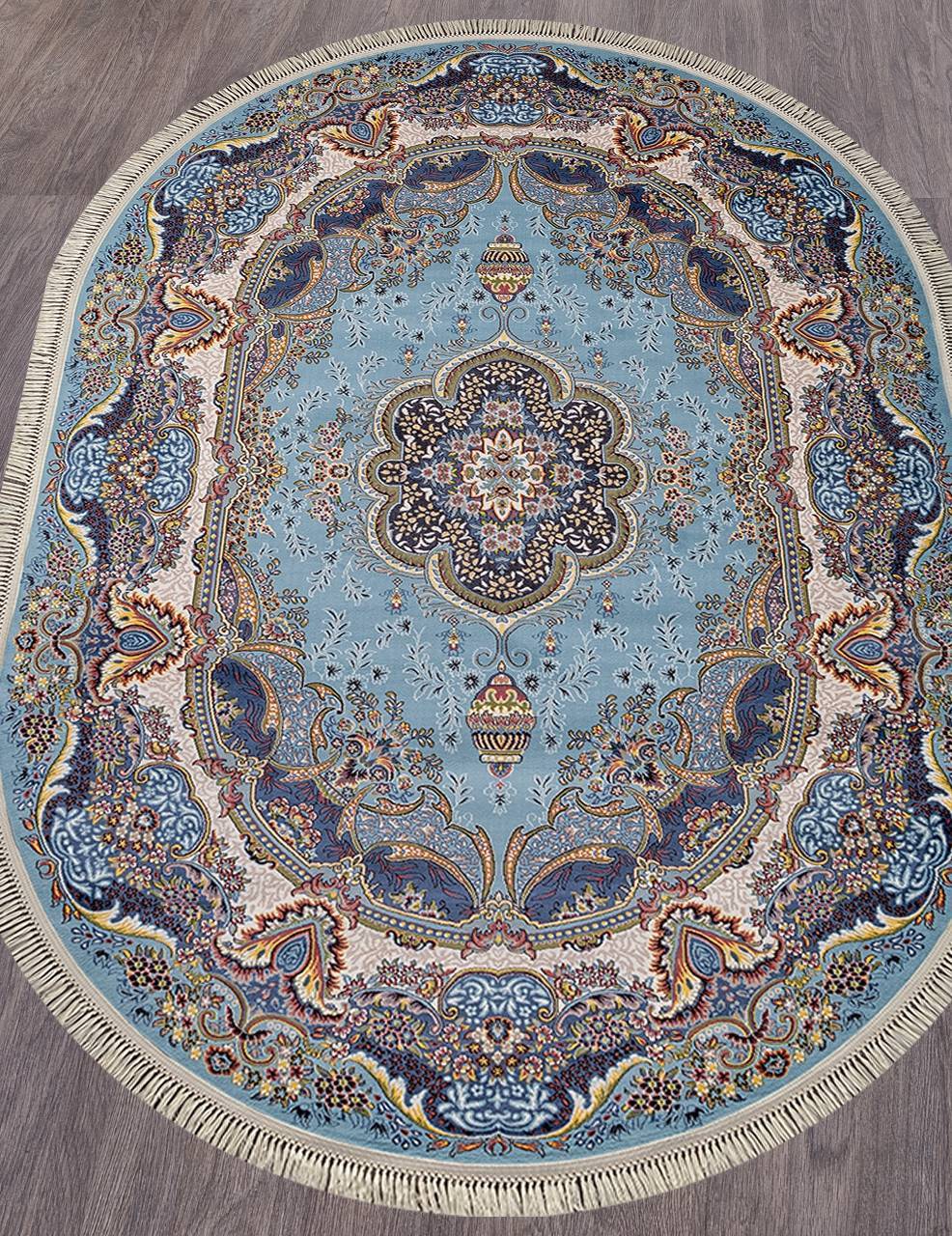 Если вы ищите красивый и элегантный ковер для украшения интерьера в классическом стиле, то обратите свое внимание на этот голубой, овальный ковер.