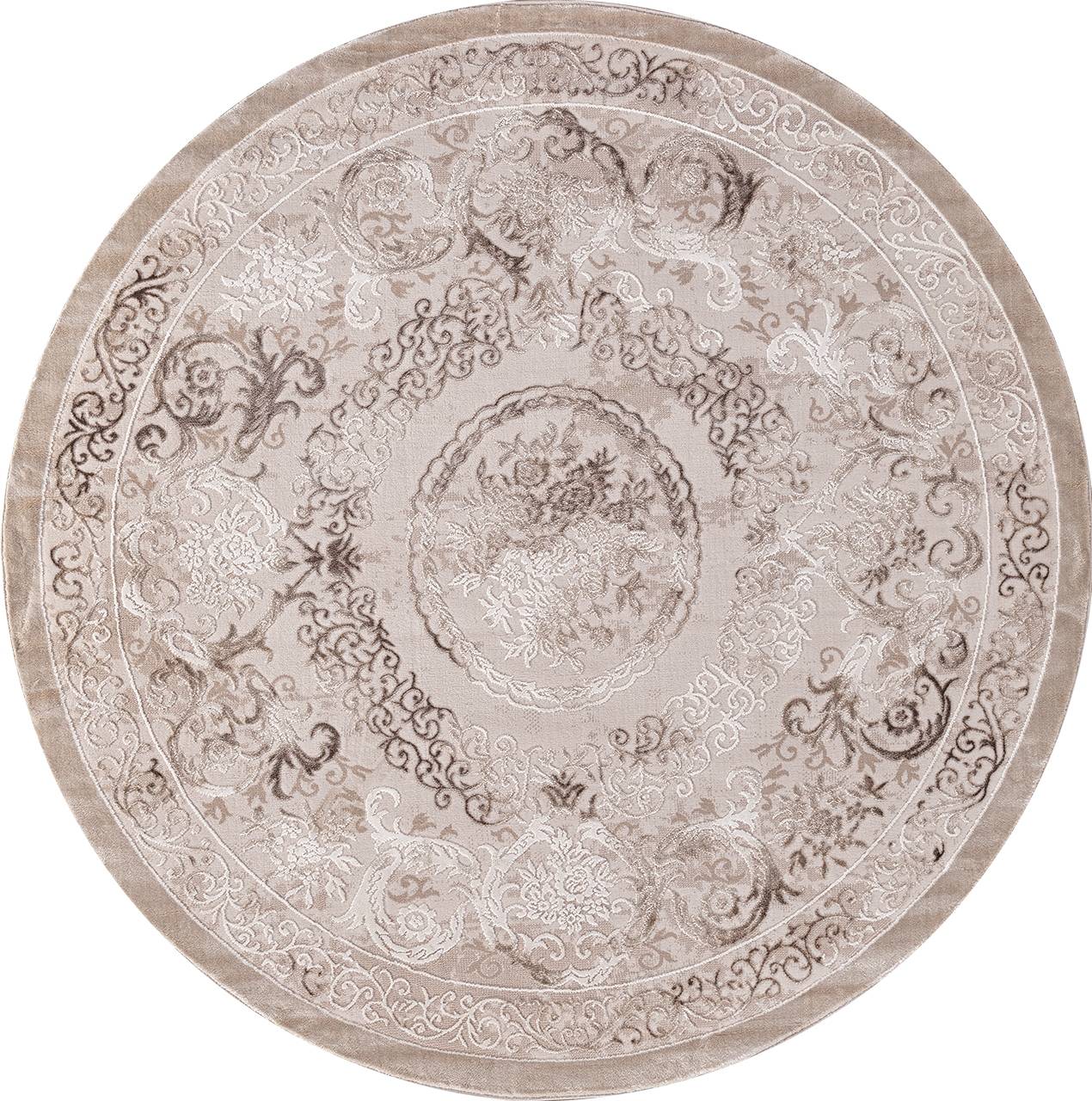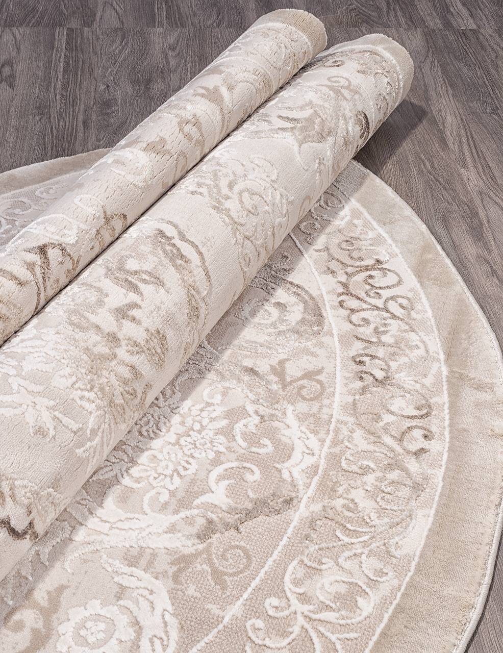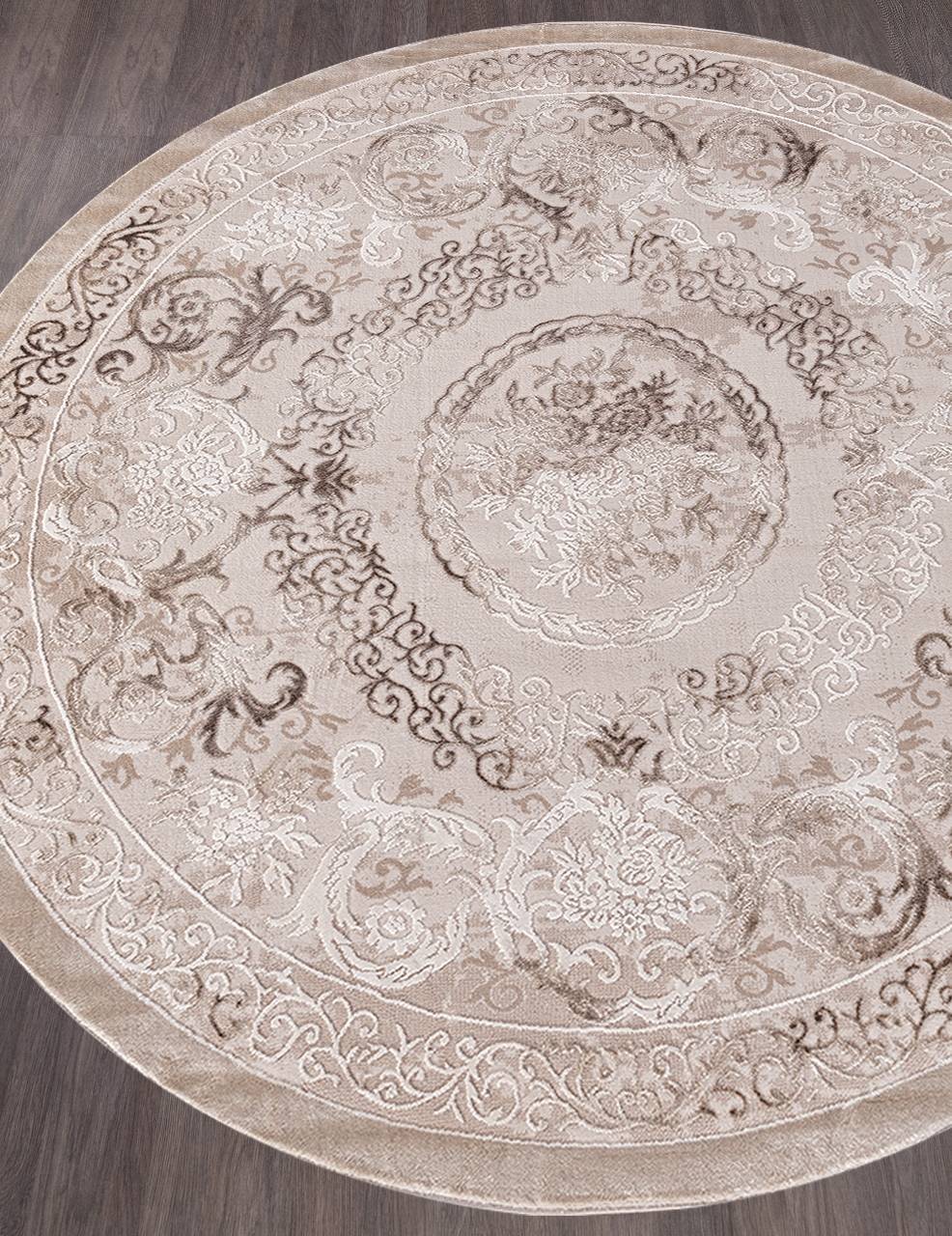 Стильный круглый ковер в классическом стиле с рельефным орнаментом. Отлично подойдет для интерьера гостиной или зала.