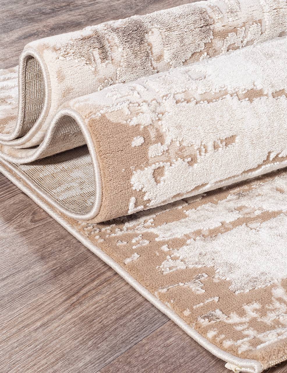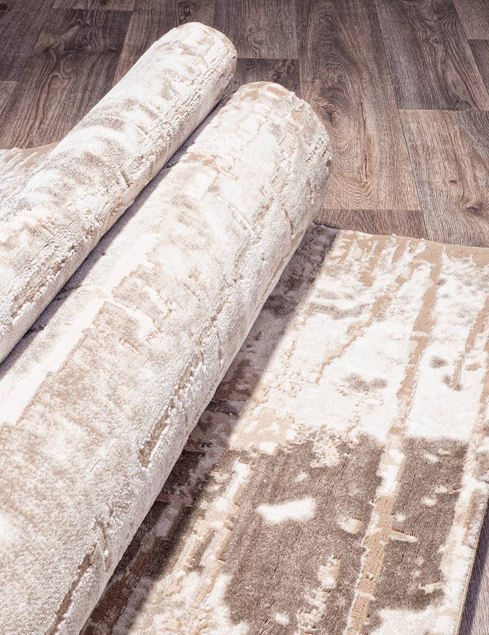 Спокойная бежевая расцветка и рельефный абстрактный рисунок делают этот ковер неплохим украшением для любого современного интерьера.