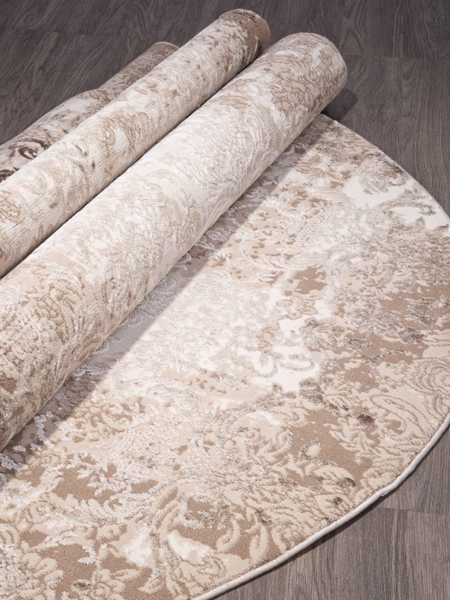 Стильный овальный ковер в бежевой палитре. Станет отличным украшением для гостиной или столовой в лю...