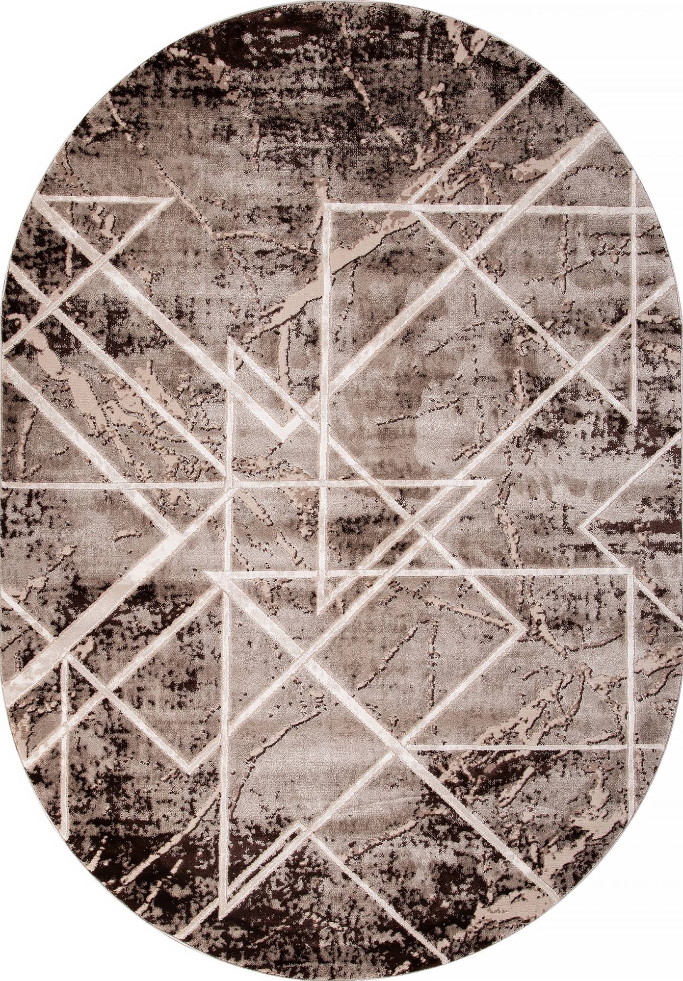 Стильный овальный ковер в бежевой расцветке с геометрическим рисунком станет хорошим украшением для интерьера вашего дома.