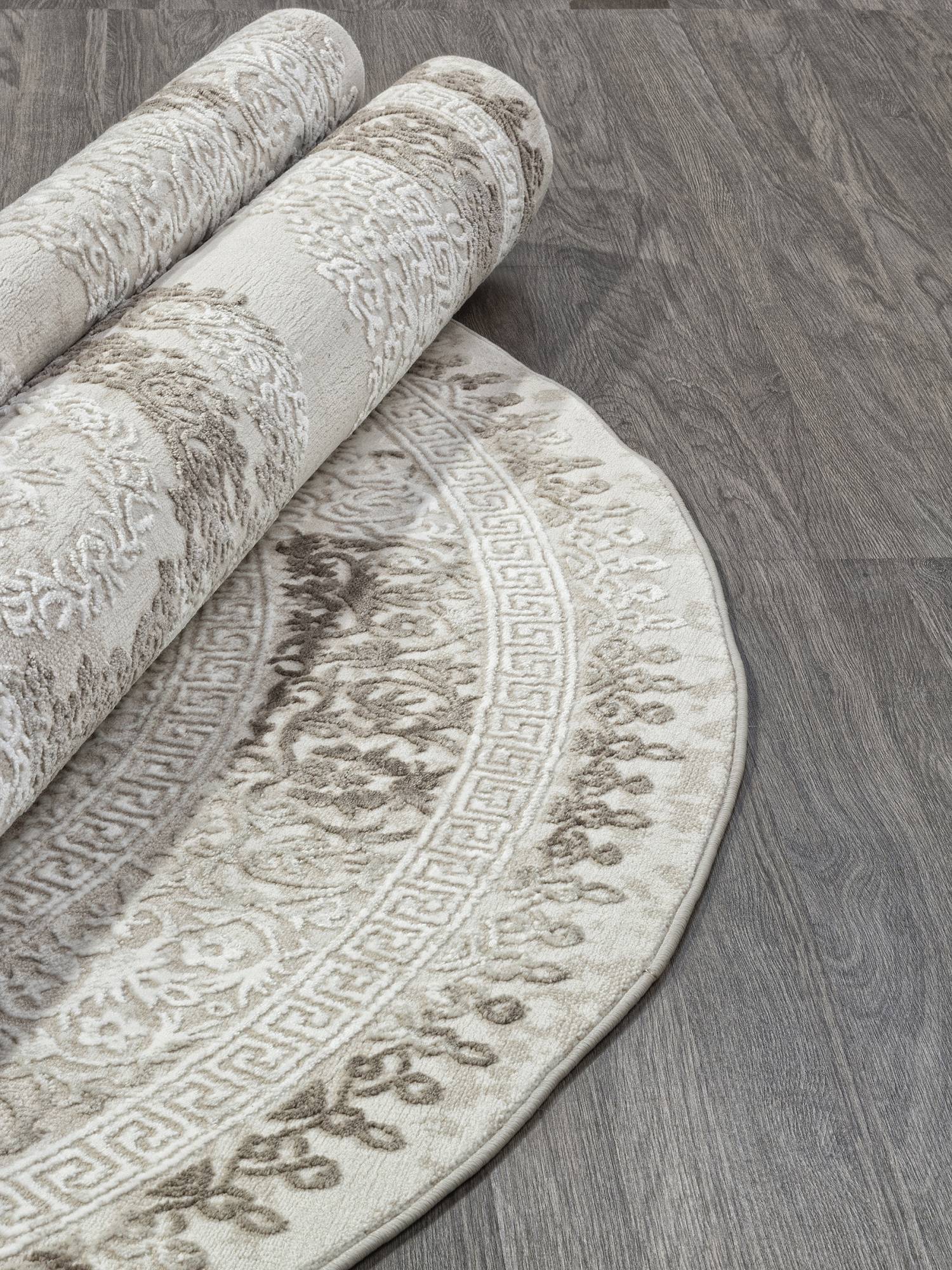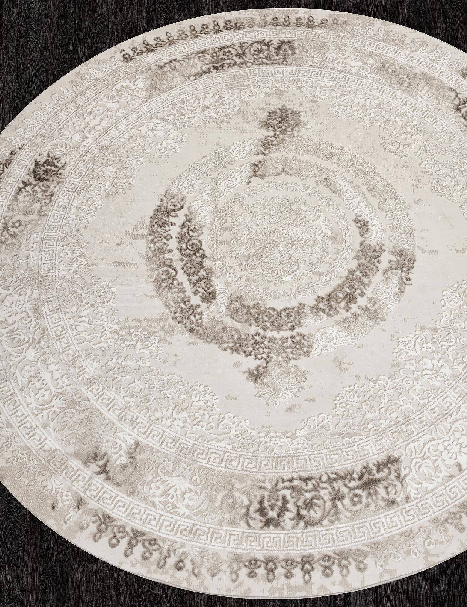 Красивый, светлый, круглый ковер отлично подойдет для гостиной или столовой.