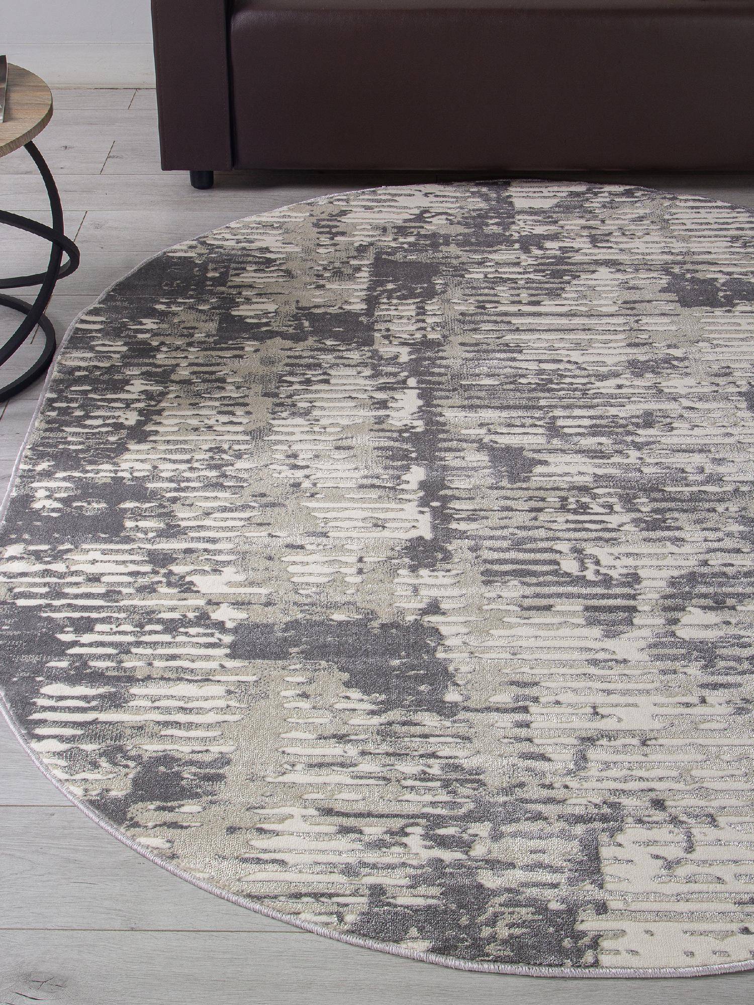 Модный овальный ковер в современном дизайне и светлом окрасе. Такое ковровое изделие отлично подойдет для украшения гостиной или зала.