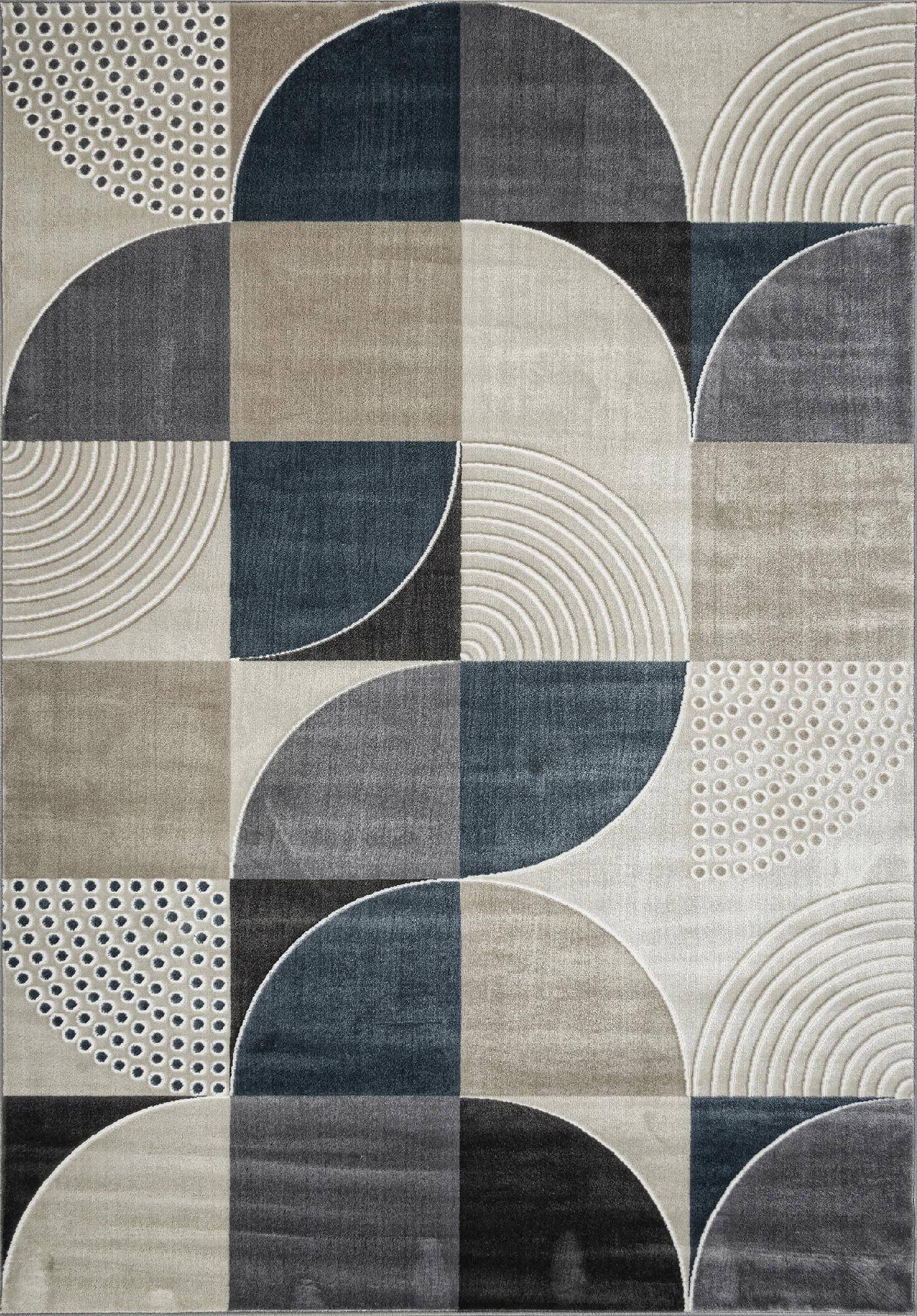Стильный, оригинальный ковер с геометрическим орнаментом и приятной сине-бежевой расцветкой. Отличное украшением для интерьера вашего дома.