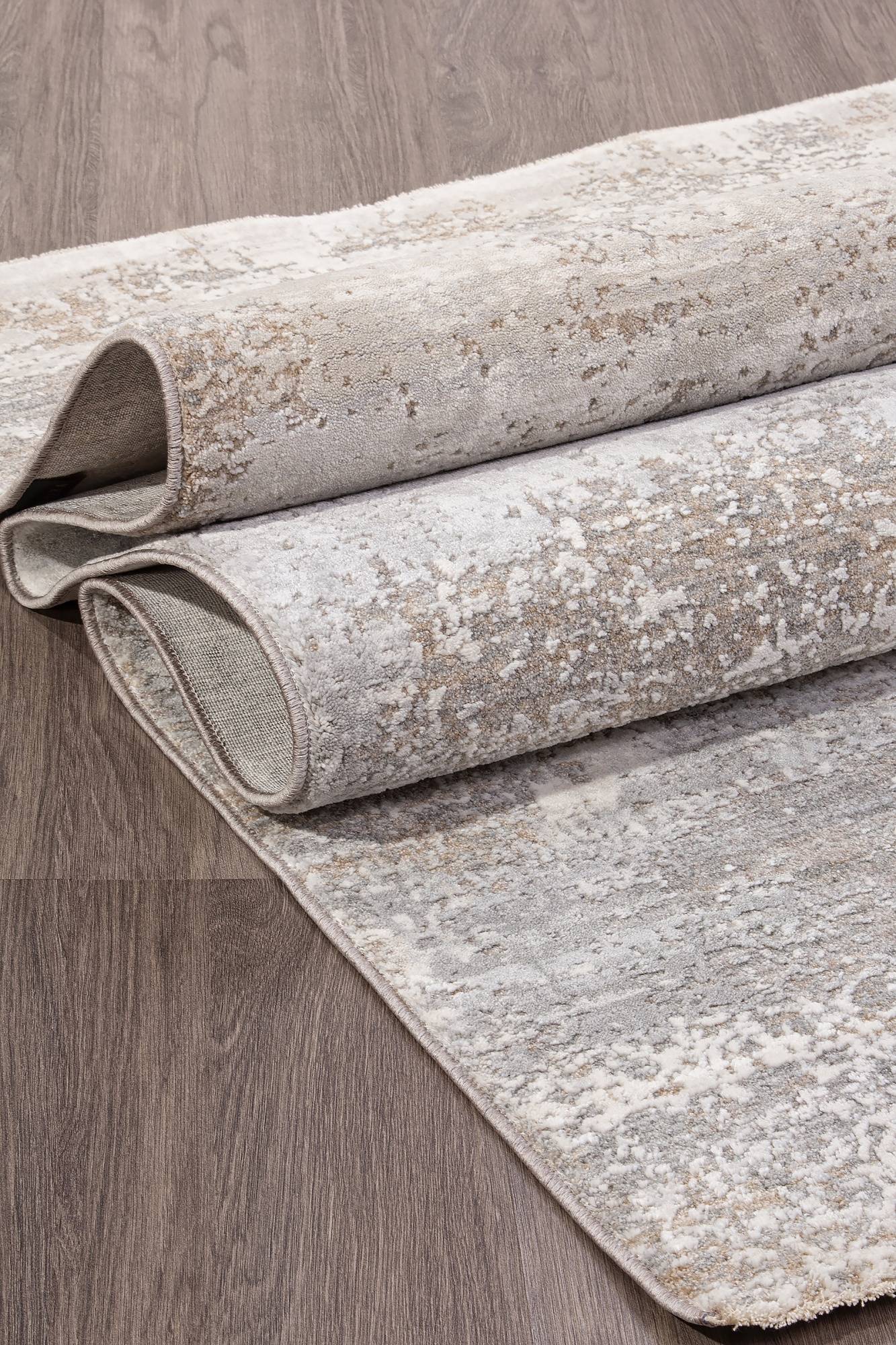 Кремово-серая расцветка, абстрактный рисунок, легкая чистка и гипоаллергенность позволяют этому ковру хорошо дополнять любой современный интерьер.