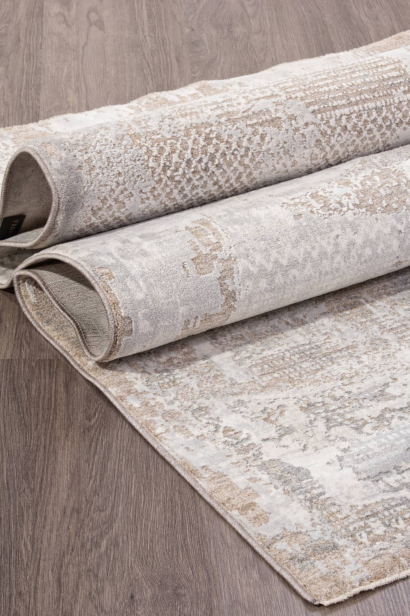 Стильный, современный, износостойкий ковер в серо-бежевой расцветке. Такое ковровое изделие будет хорошим дополнением к любому современному интерьеру.