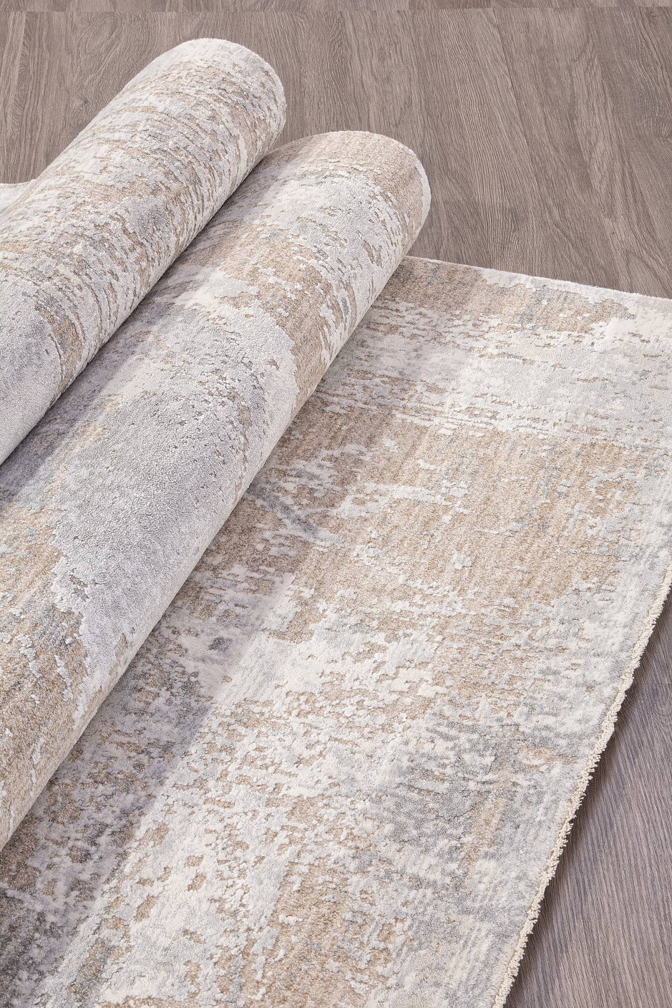 Интересный и необычный ковер в серо-бежевой расцветке. Такое ковровое изделие благодаря свое дизайну сможет дополнить практически любой интерьер.