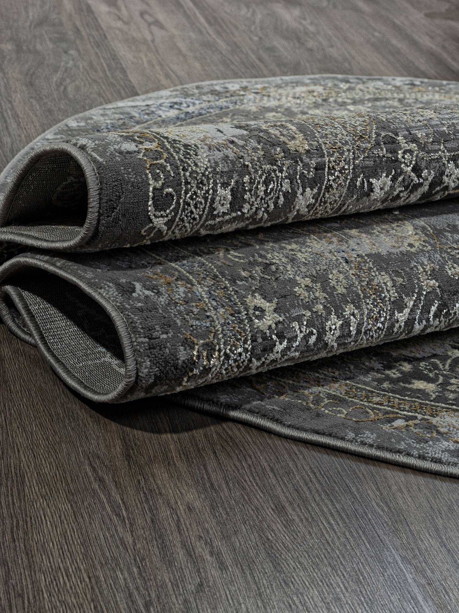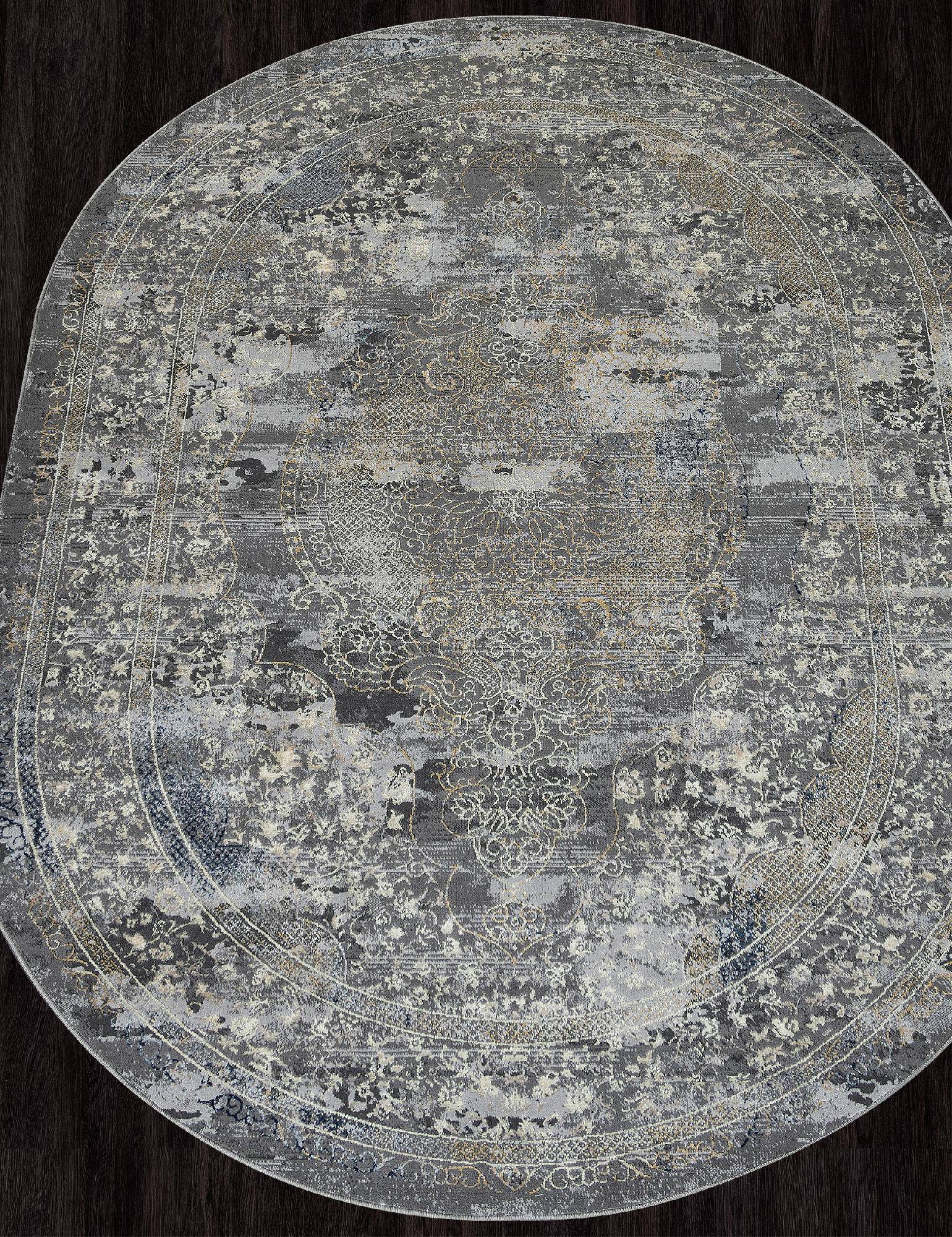 Овальный ковер в классическом дизайне с расцветкой которая имитирует винтажную потертость и выцветание. Это ковровое изделие станет стильным дополнением для интерьера вашего дома.