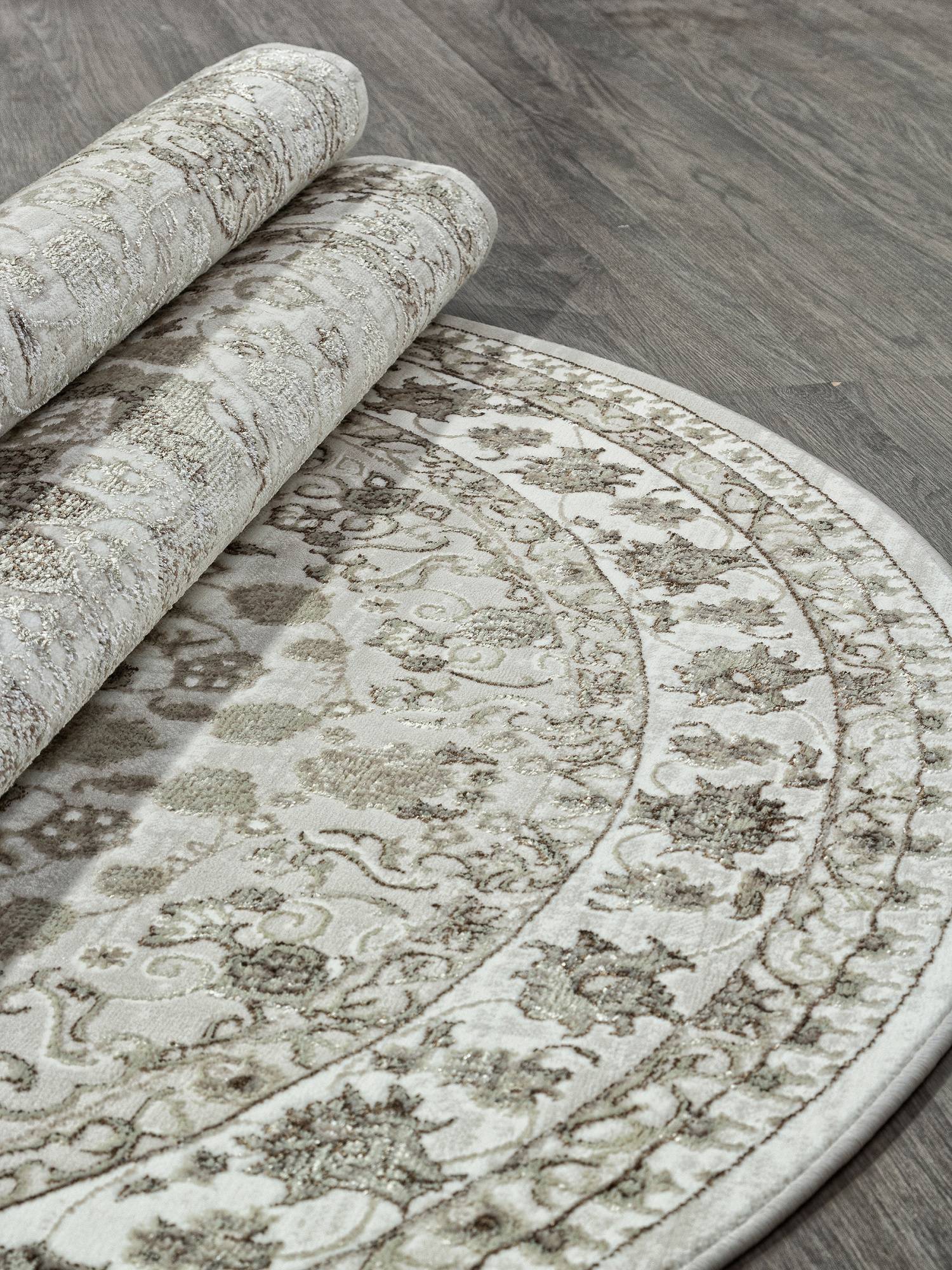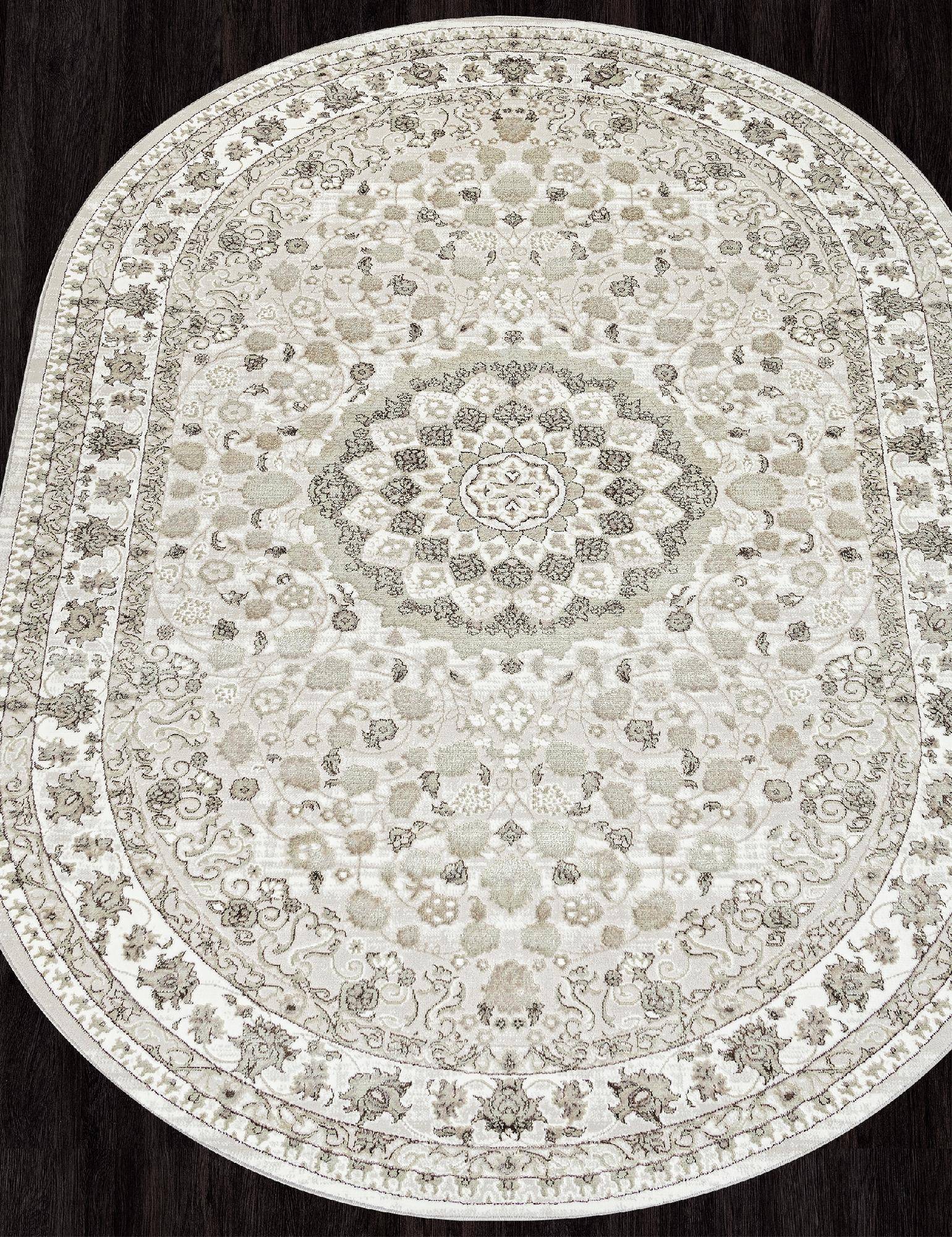Светлый овальный ковер в классическом стиле. Хорошо дополнит интерьер гостиной или зала.