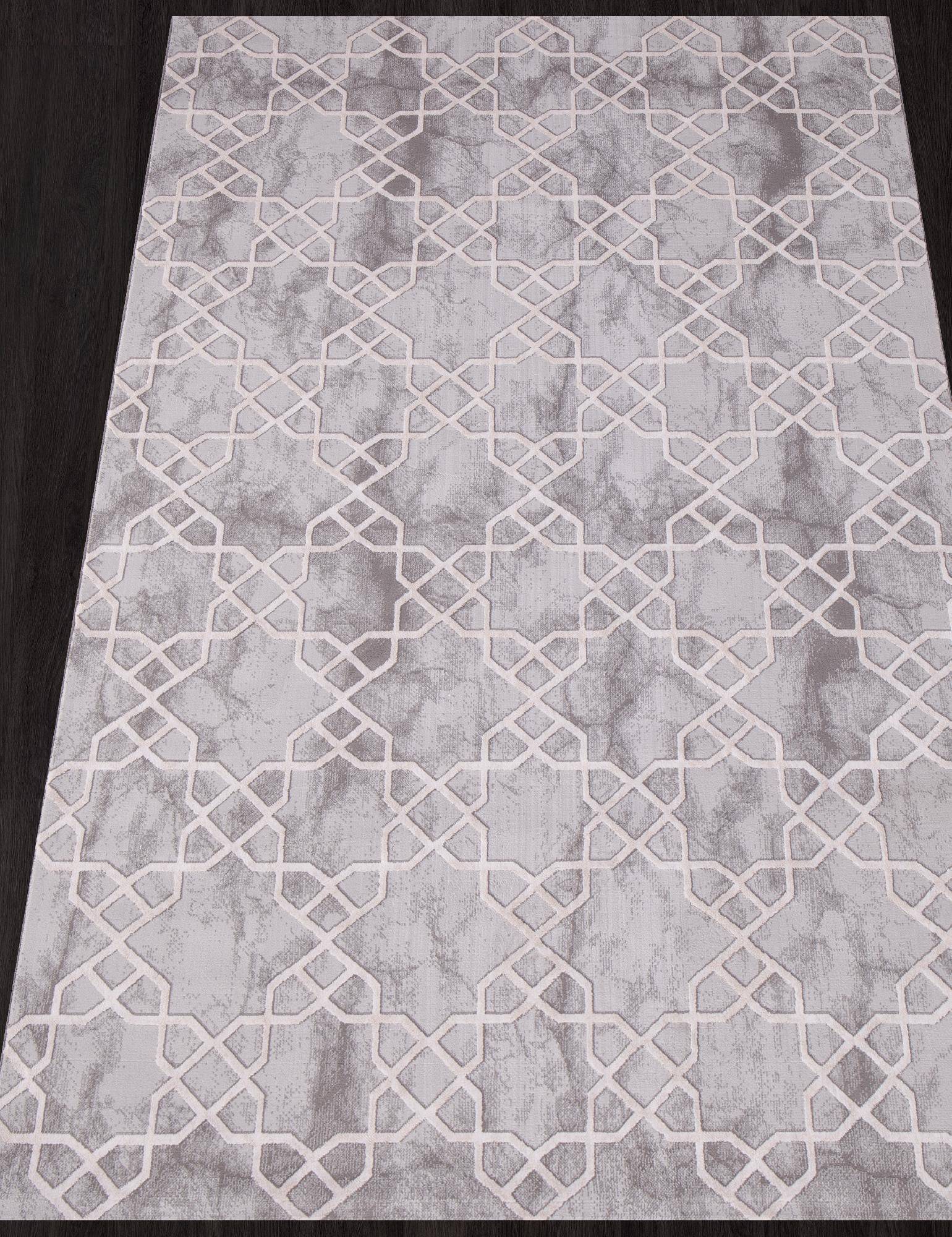 Интересный фон который напоминает своим рисунком мрамор неплохо сочетается с стильным орнаментом, что позволяет этому ковру быть красивым дополнением к любому современному интерьеру.
