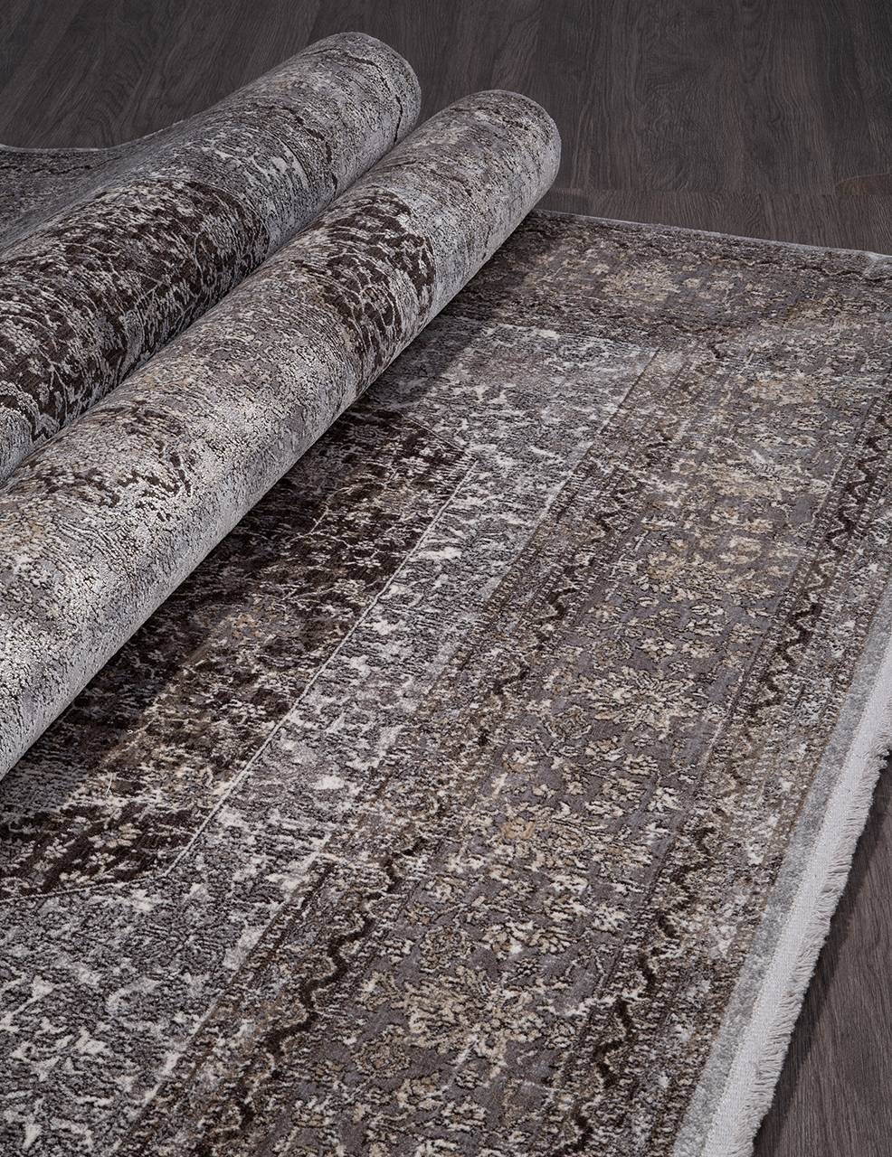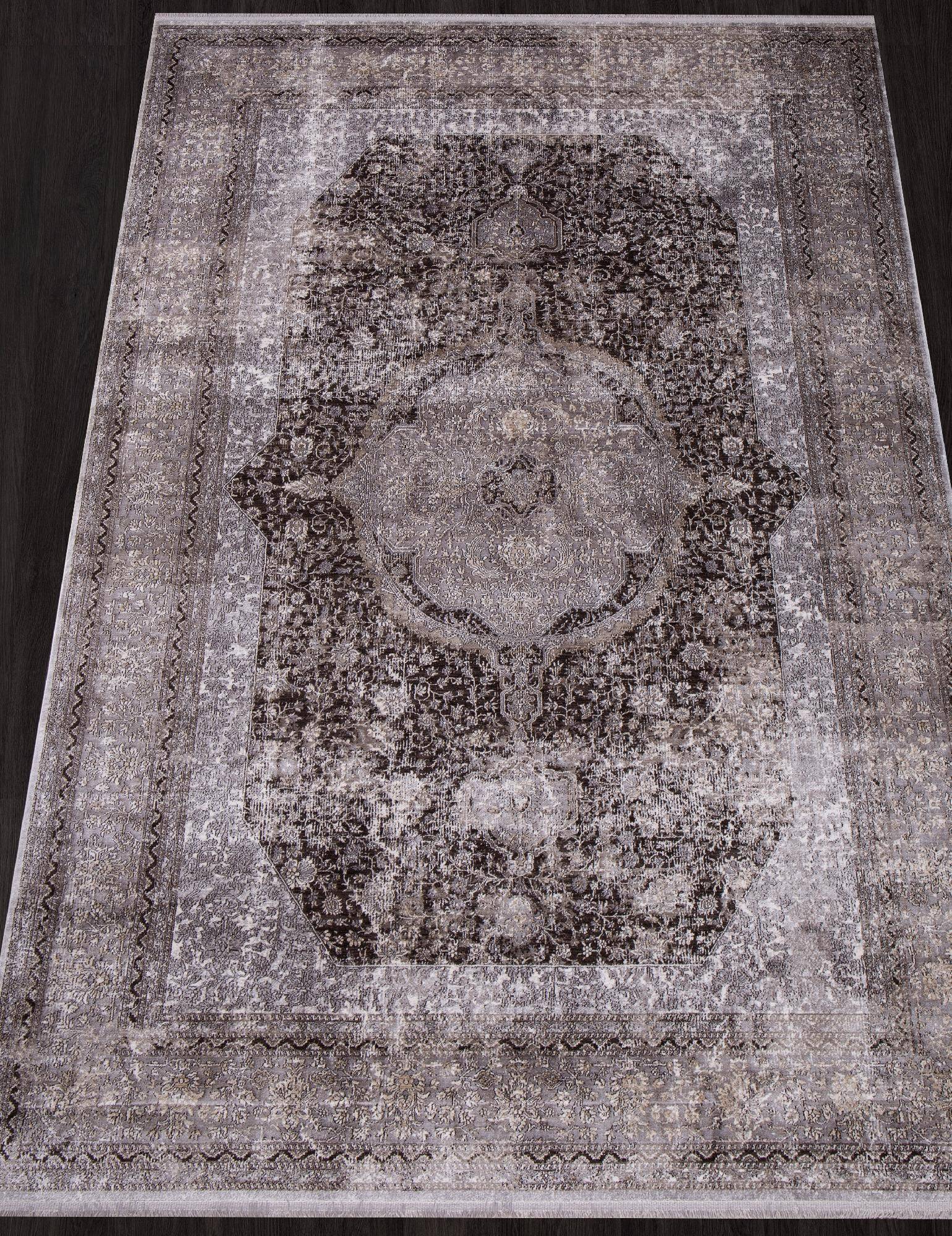 Бежево-серая расцветка и классический стиль этого ковра станет отличным украшением для любого современного интерьера.