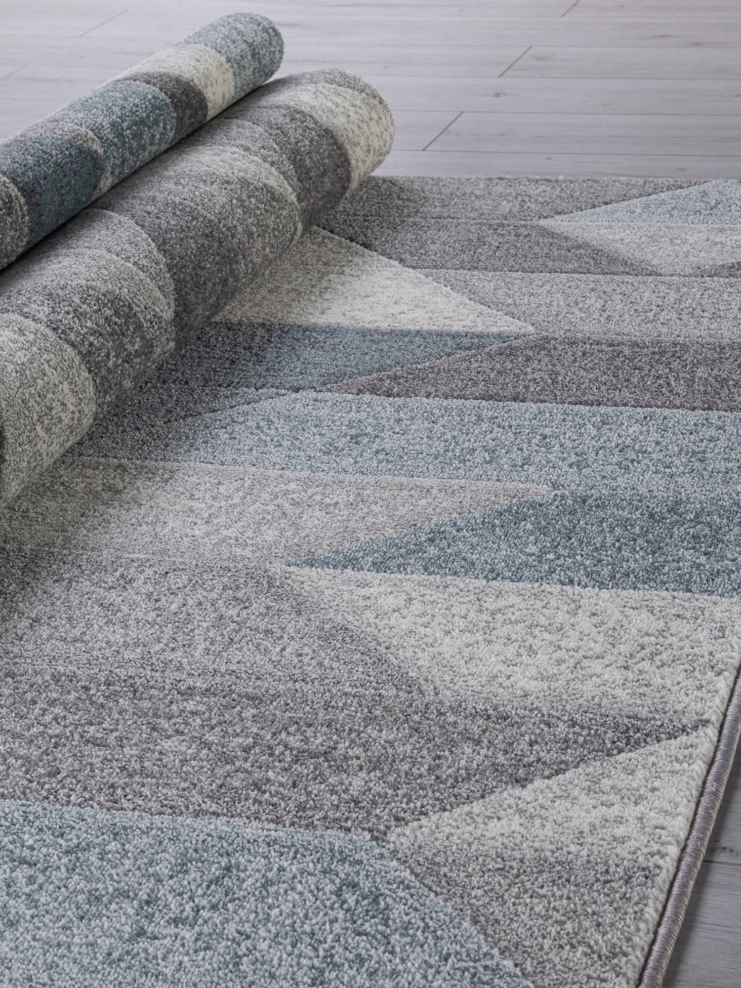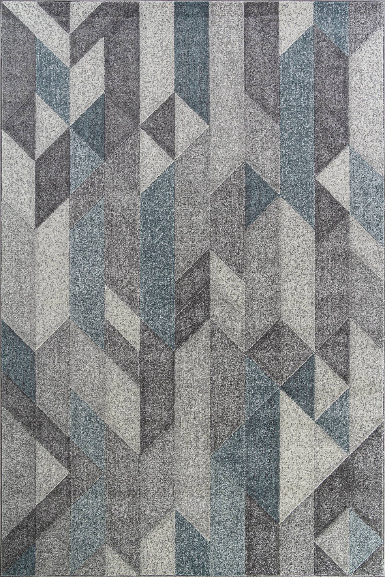 Рисунок из геометрических элементов и стильная, строгая расцветка в сине-серой цветовой гамме позволяют этому ковру стать оригинальным украшением для интерьера вашего дома.