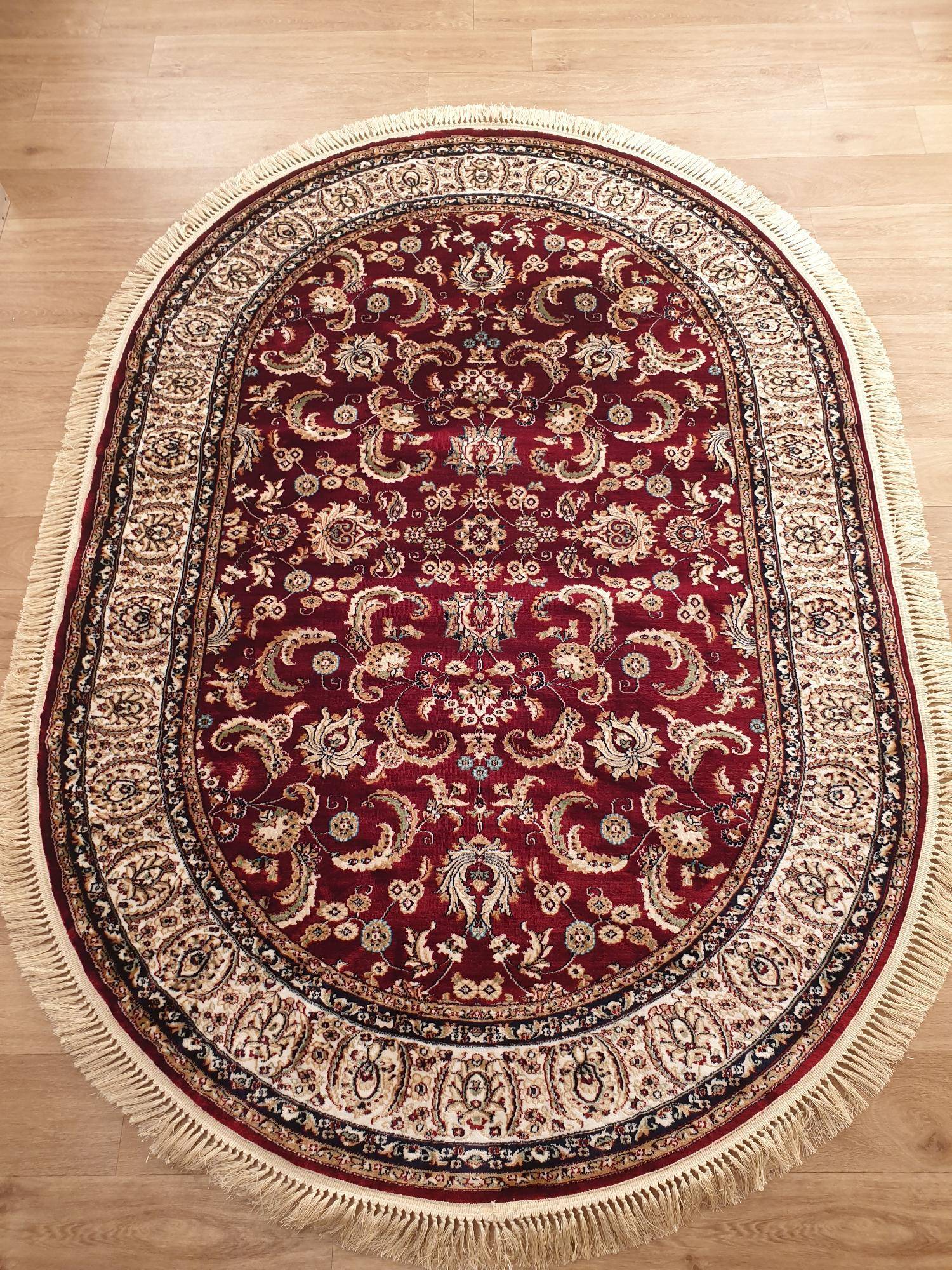 Стильный овальный ковер который замечательно подойдет под интерьер в классическом стиле. Насыщенная цветовая схема и детализированный орнамент придают этому ковровому изделию элегантности и благородства.