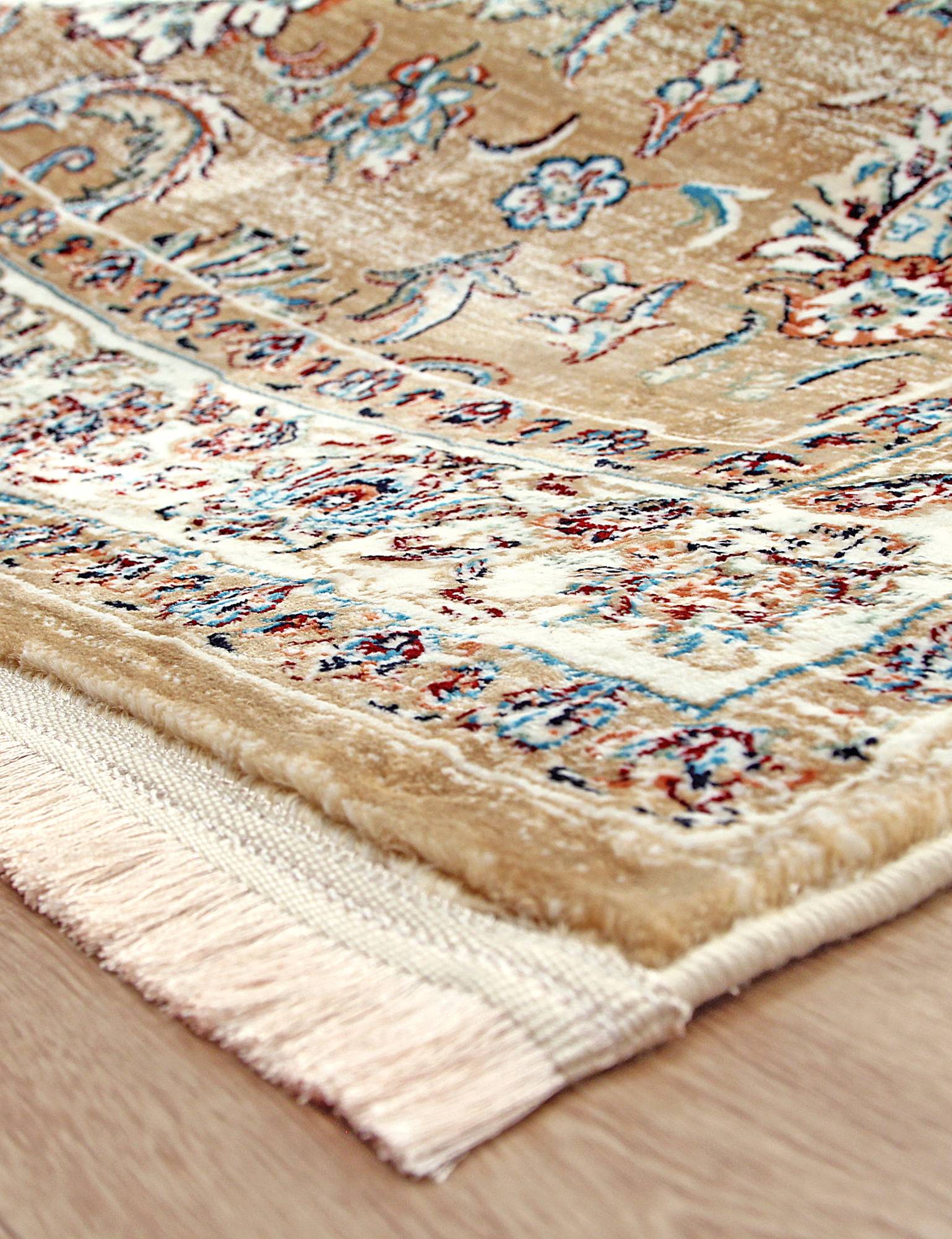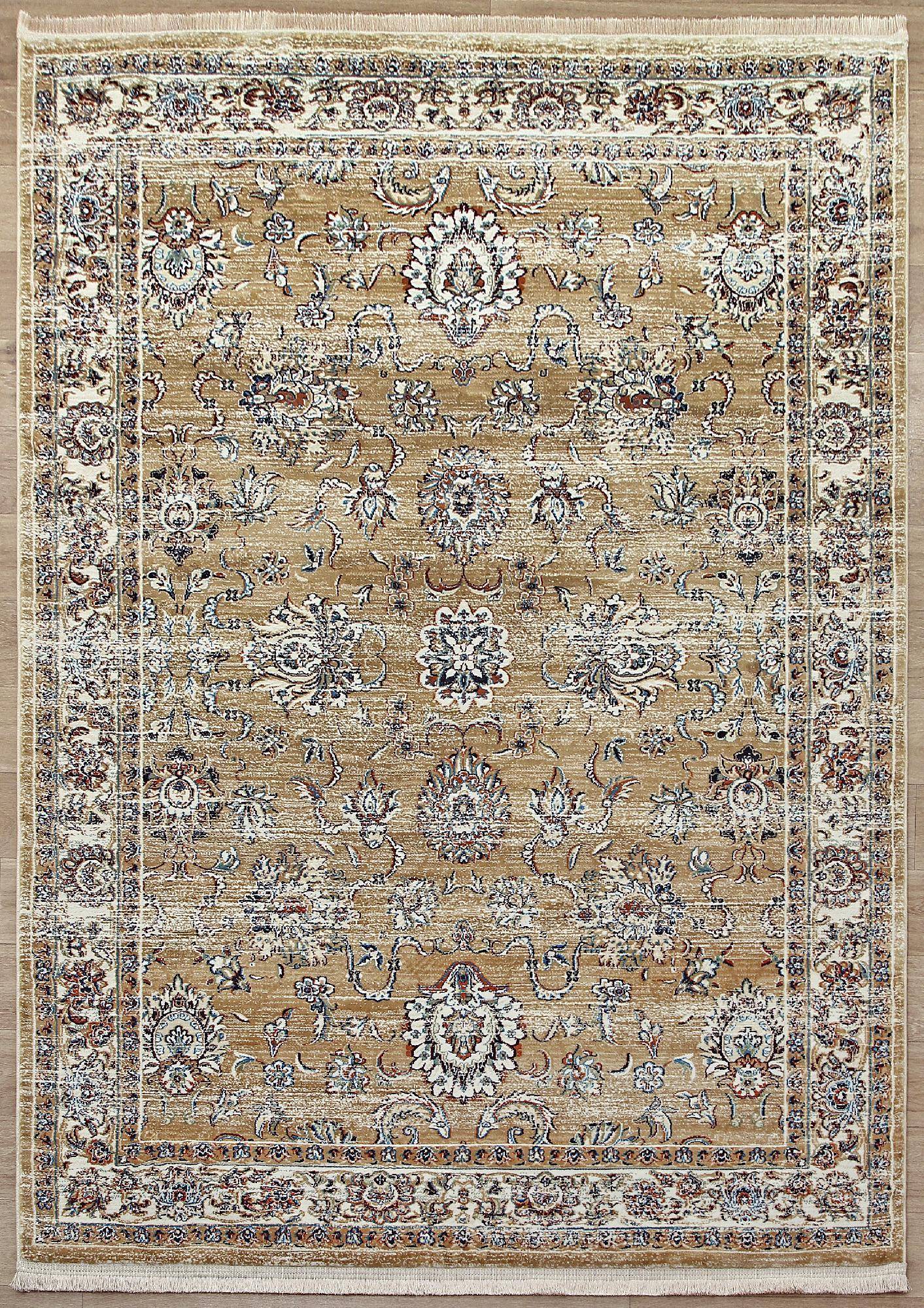 Ковер в классическом дизайне с бежевой палитрой и детализированным орнаментом. Отличное приобретение для украшения интерьера зала или гостиной в классическом стиле.