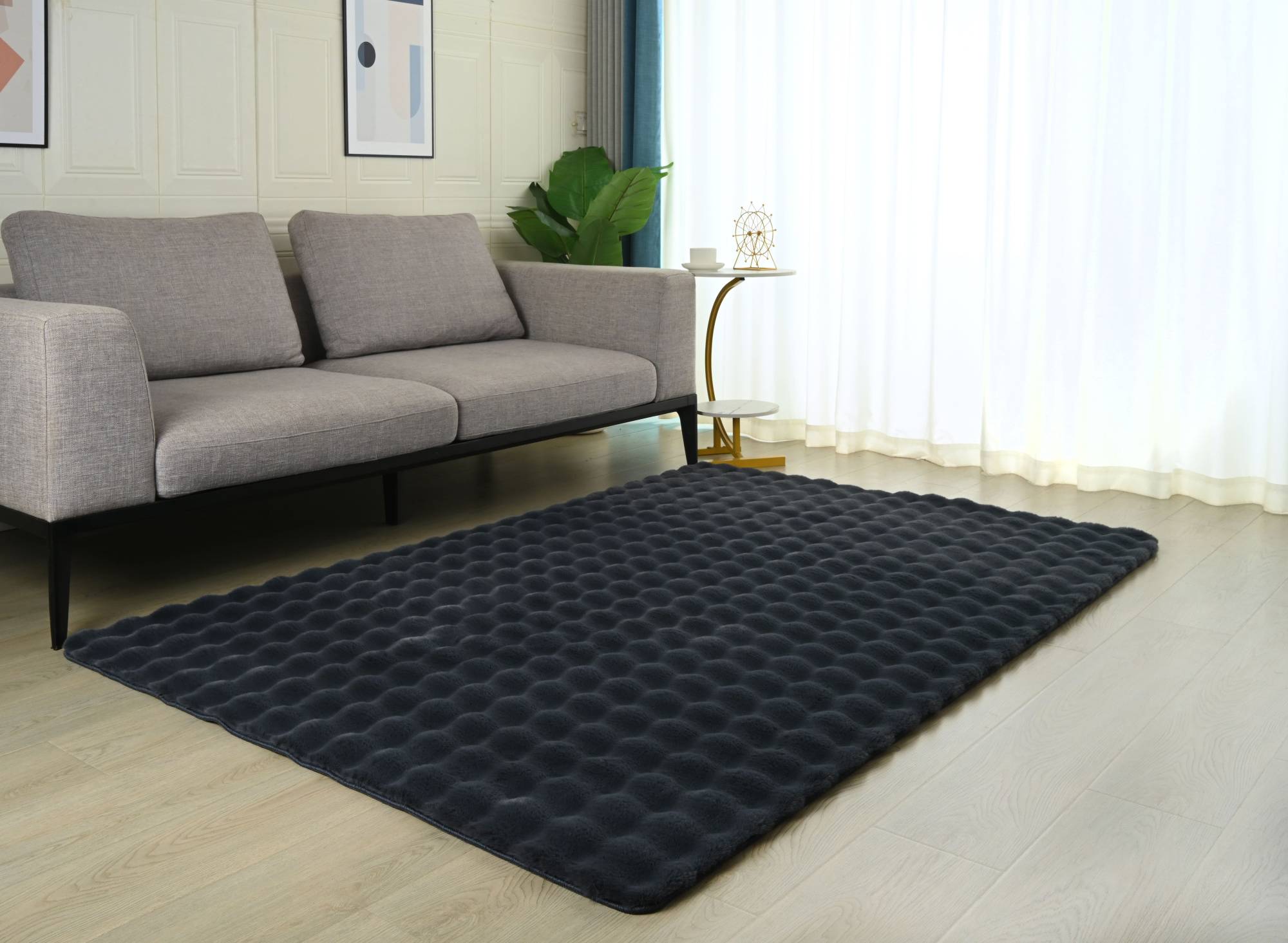 Темно-серый ковер с мягким, приятным ворсом. Такое ковровое изделие сможет отлично утеплить и украсить практически любой современный интерьер.