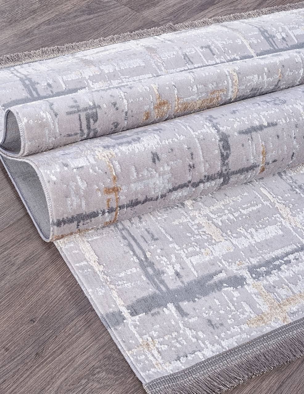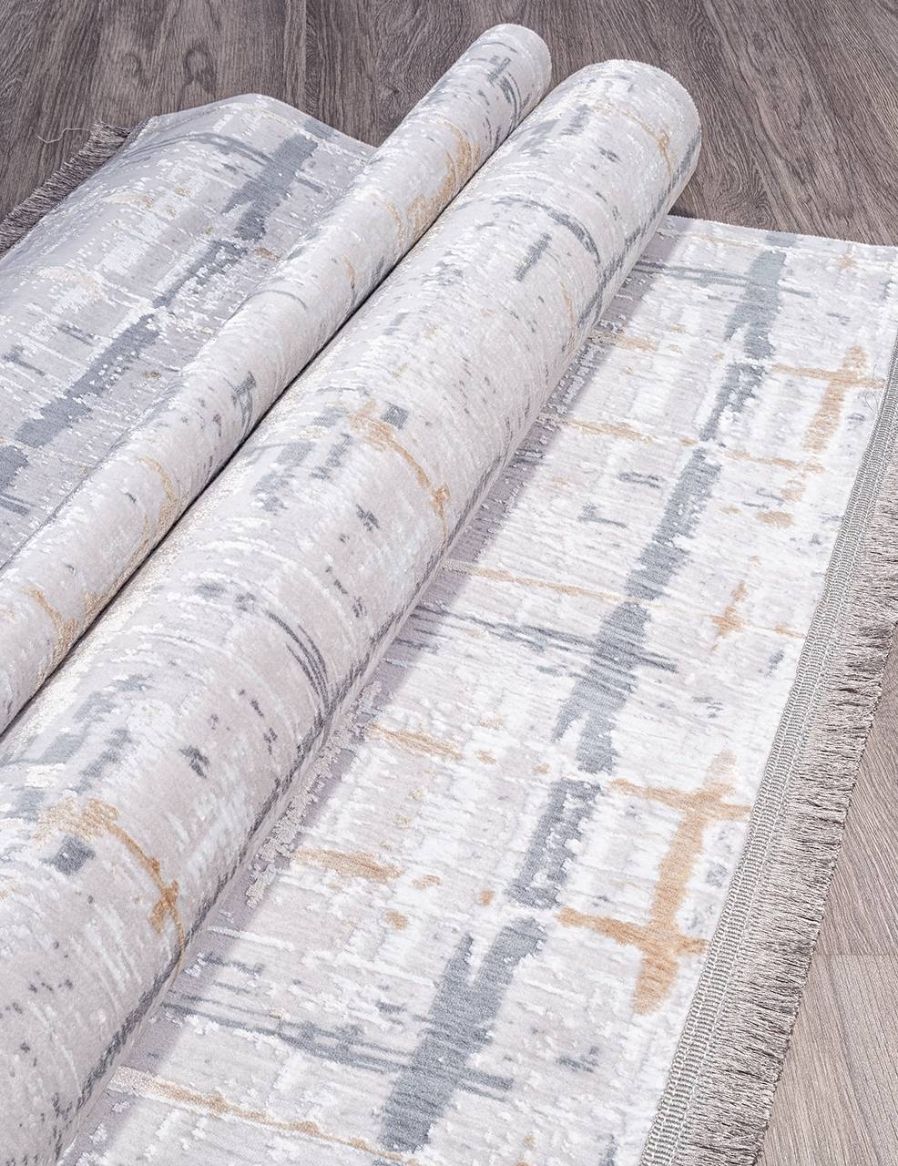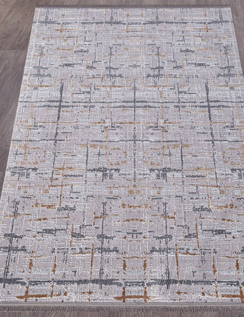 Интересный, современный ковер с абстрактным рисунком и оригинальной расцветкой в сером тоне. Такое ковровое изделие будет отличным дополнением к интерьеру вашего дома.