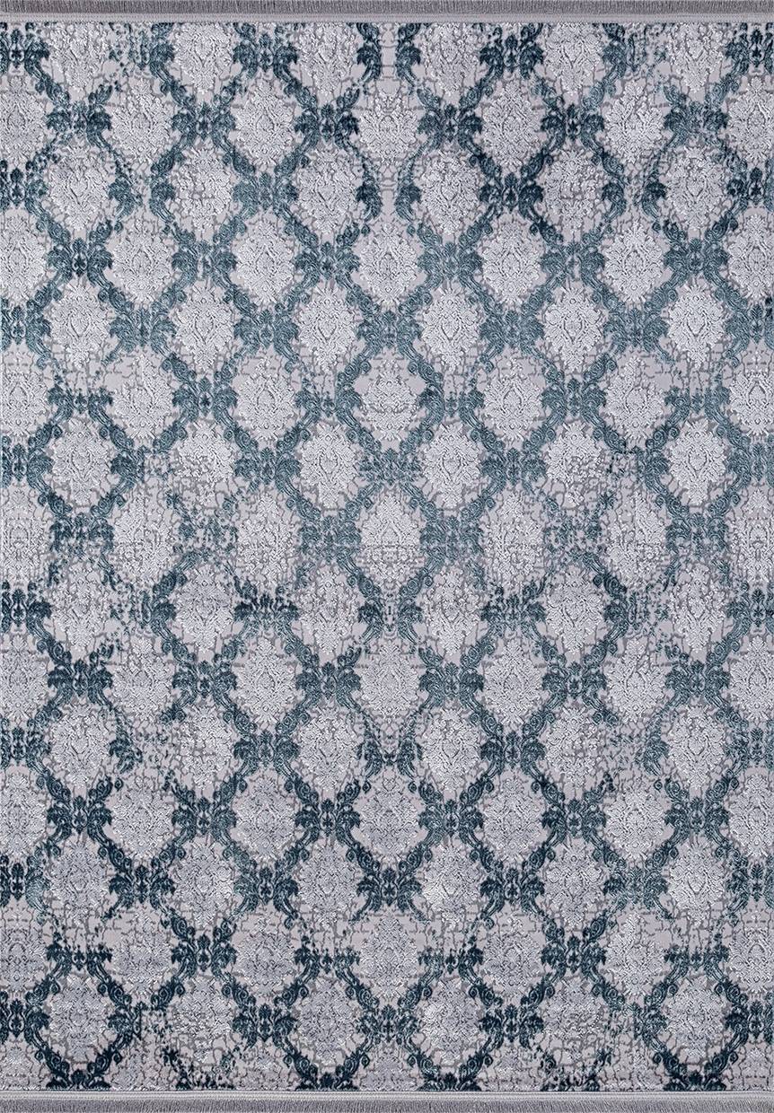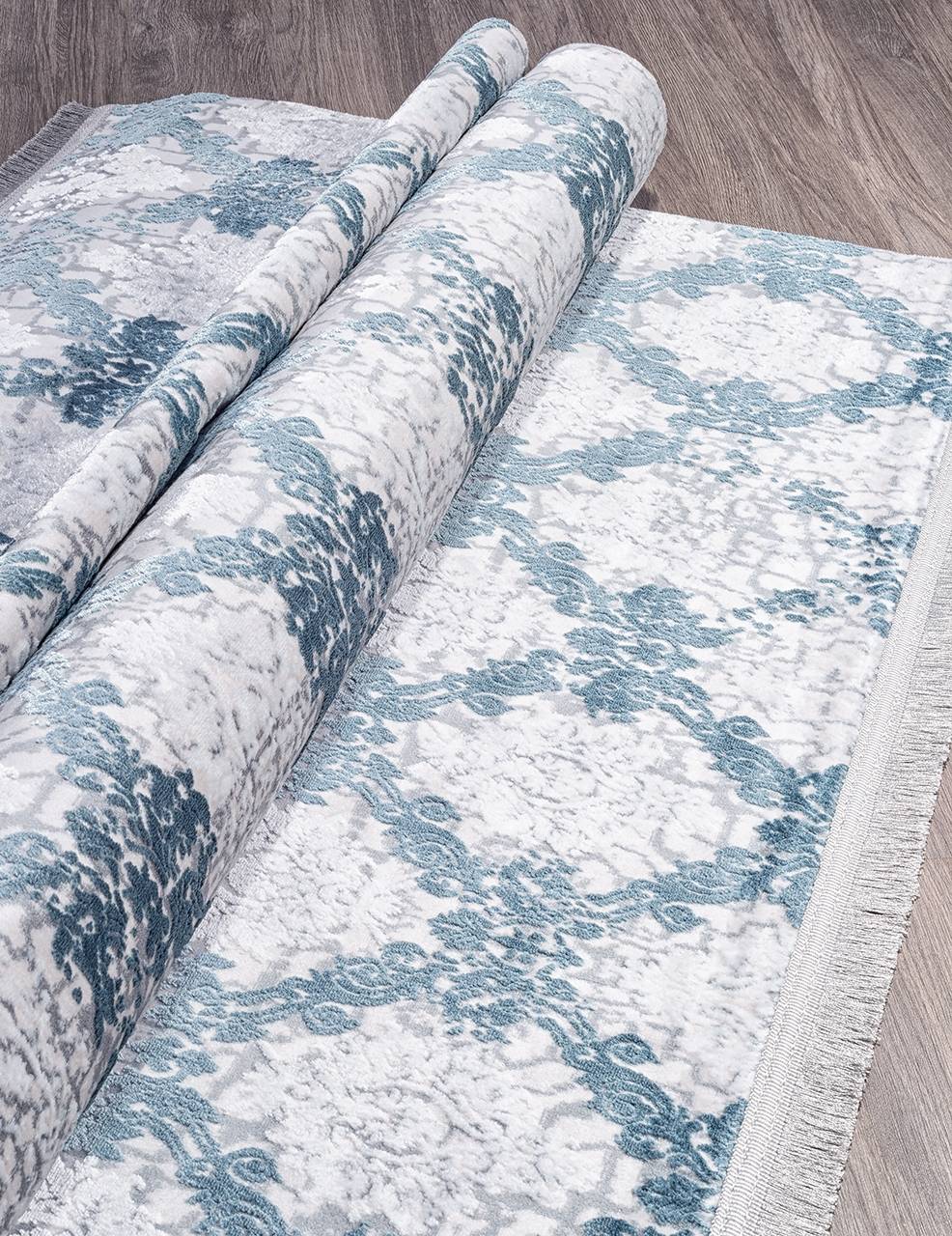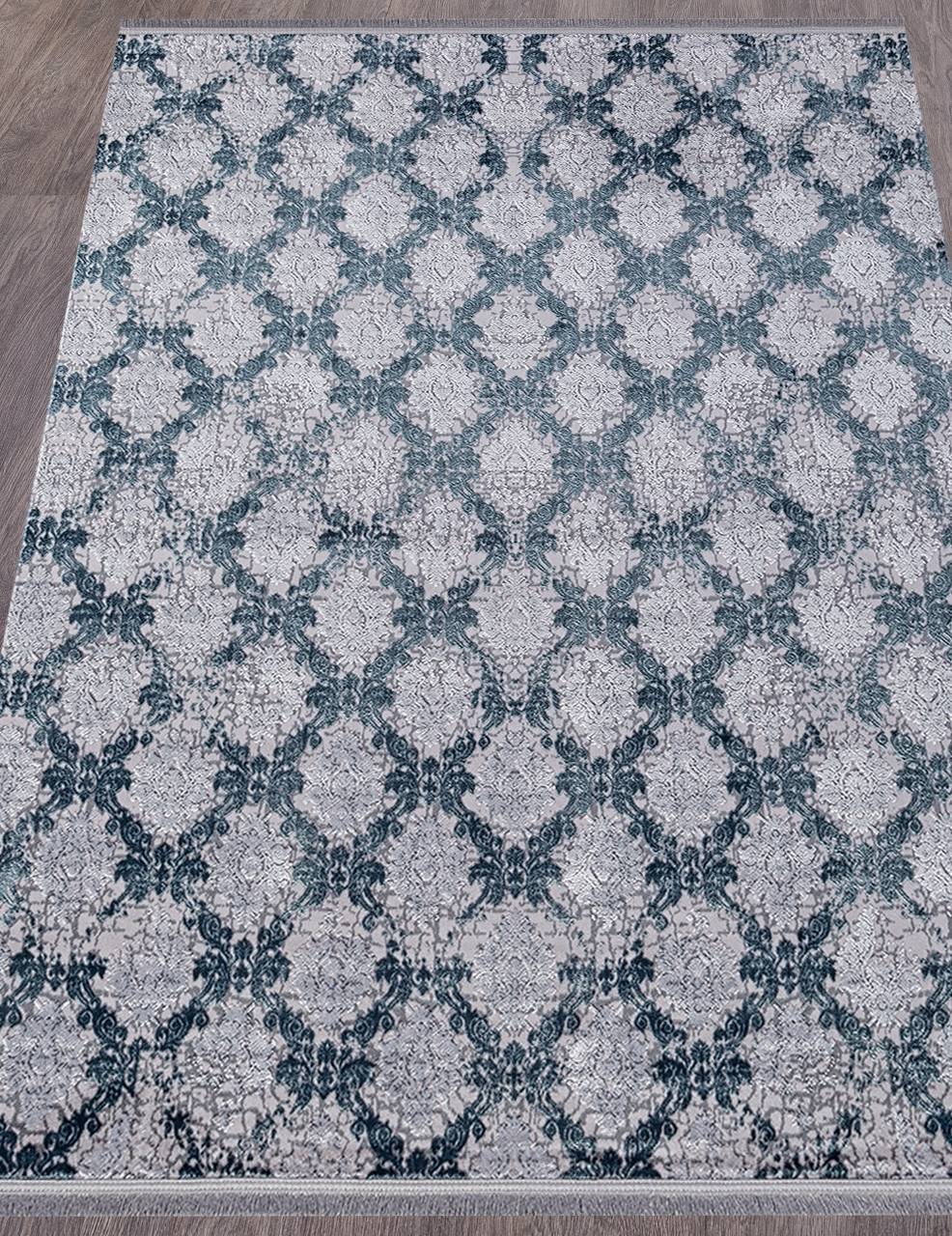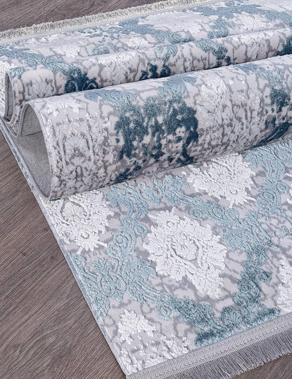 Интересный и необычный ковер с классическом рисунке с приятной и оригинальной расцветкой в серо-синих тонах. Интересное ковровое украшение для гостиной или зала.