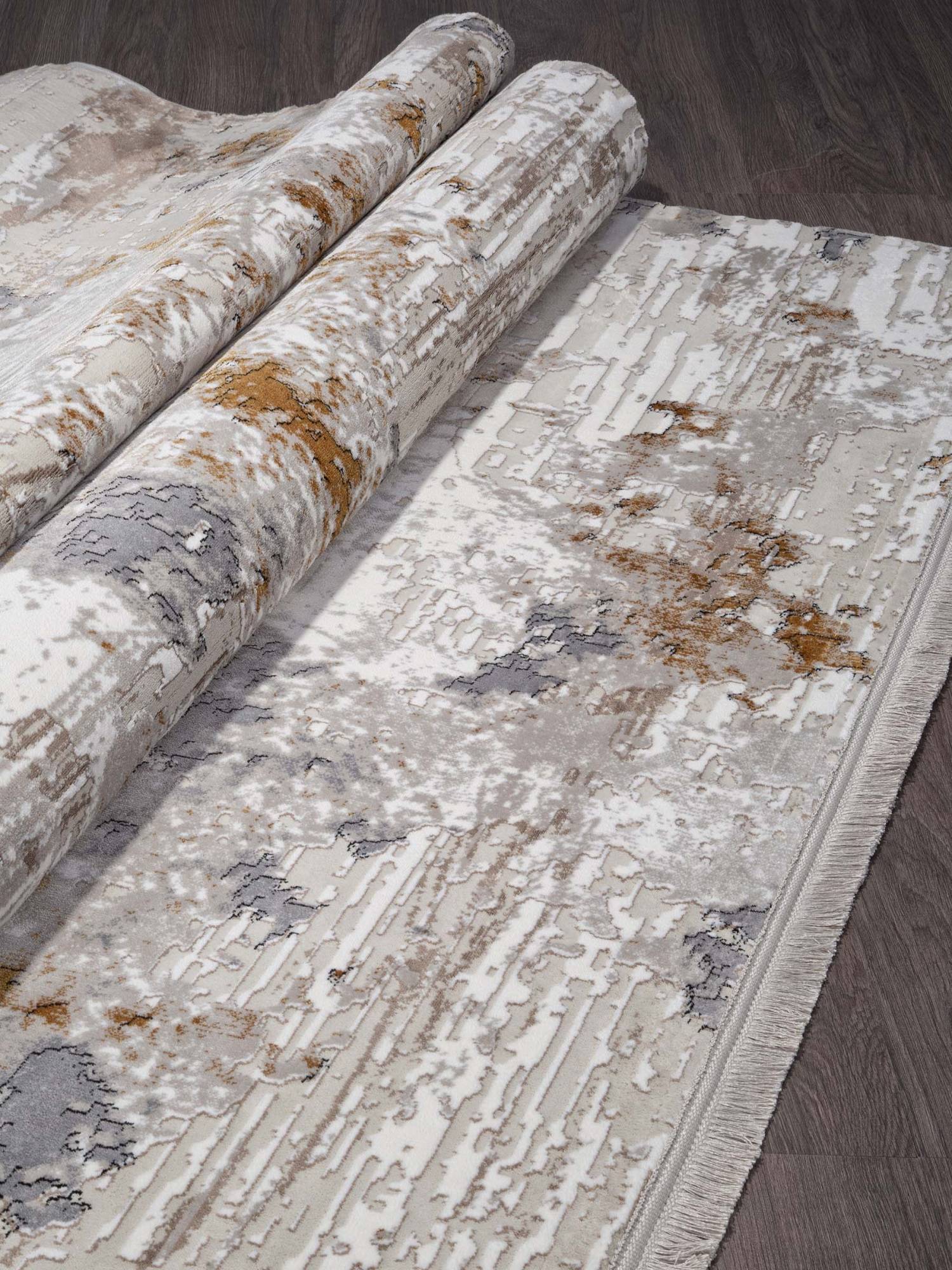 Оригинальный ковер из полиэстера с абстрактным рисунком в современном стиле. Это ковровое изделие поможет создать уютную атмосферу как в спальне, так и в зале.