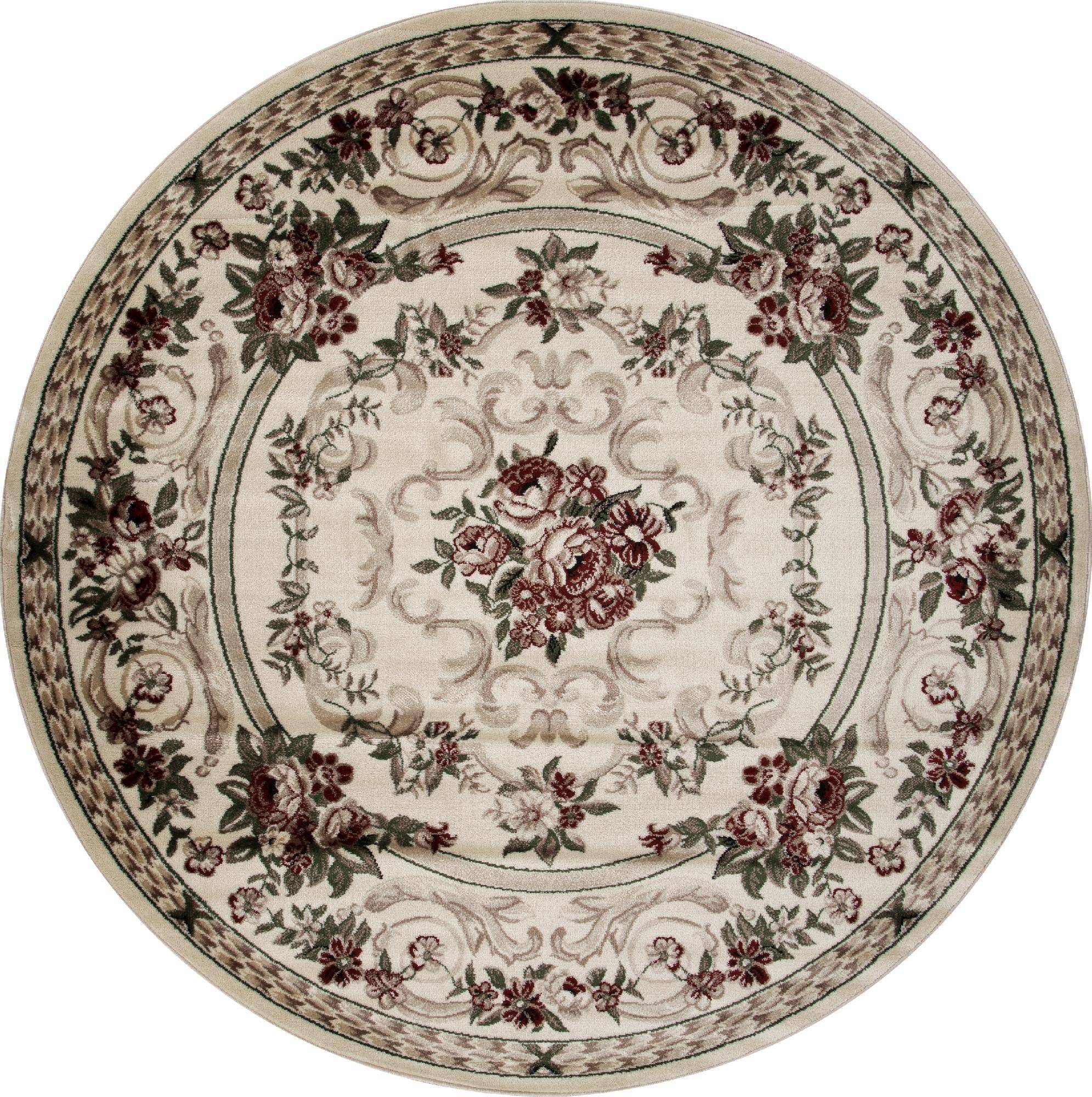 Классический круглый ковер с цветочным орнаментом станет хорошим дополнением для столовой или гостин...