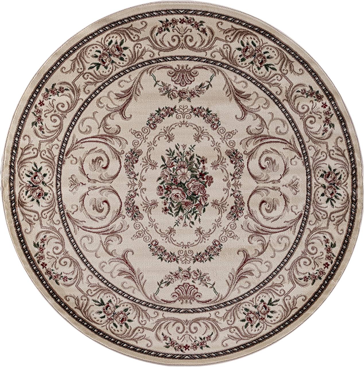 Светлый круглый ковер в классическом стиле с цветочным рисунком станет хорошим дополнением для интерьера гостиной или зала в вашем доме.