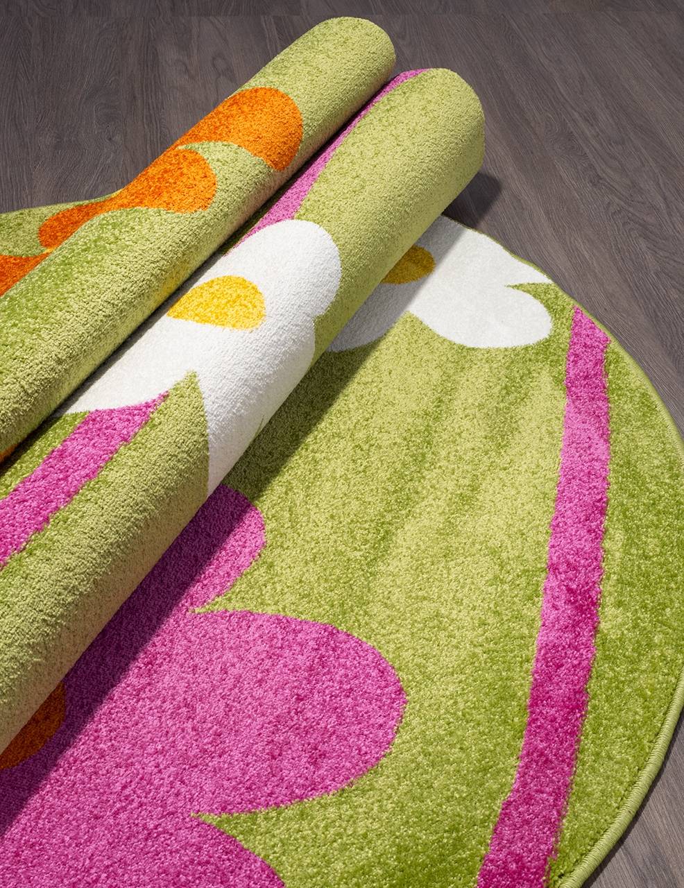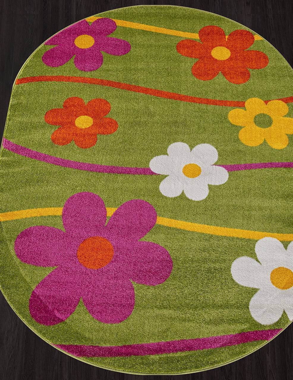 Яркий и красочный ковер с цветами - идеальное украшение комнаты юной принцессы. Овальная форма позволяет коврику выглядеть уместным на любом участке пола независимо от наличия рядом мебели.