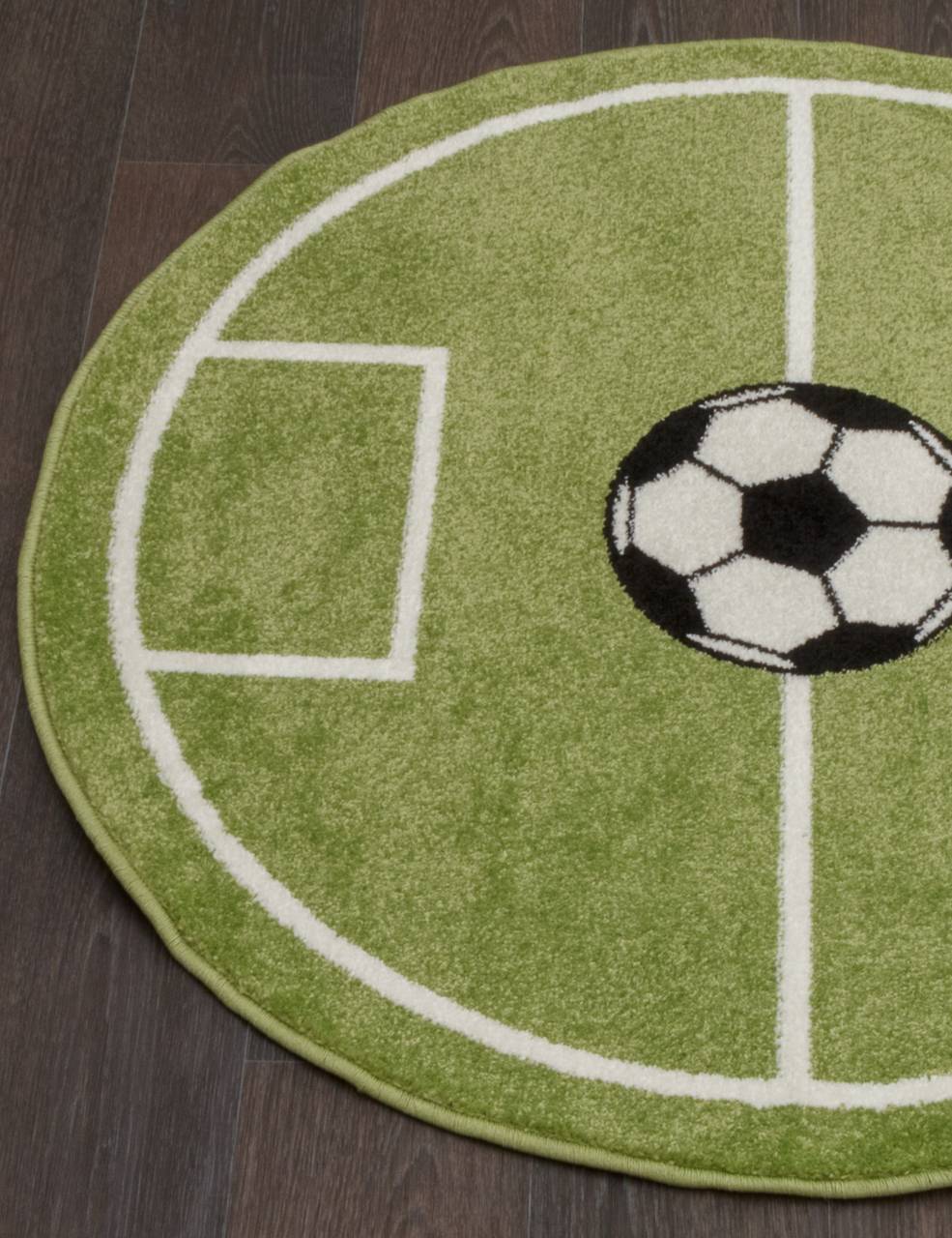Круглый ковер-футбольное поле станет отличным утеплением для комнаты мальчика.