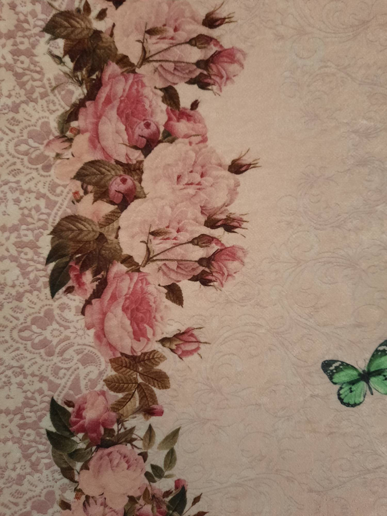 Красивый и светлый ковер с цветами и бабочками благодаря своему размеру идеально подойдет для украше...