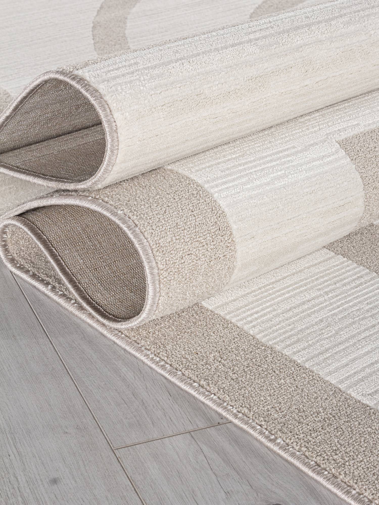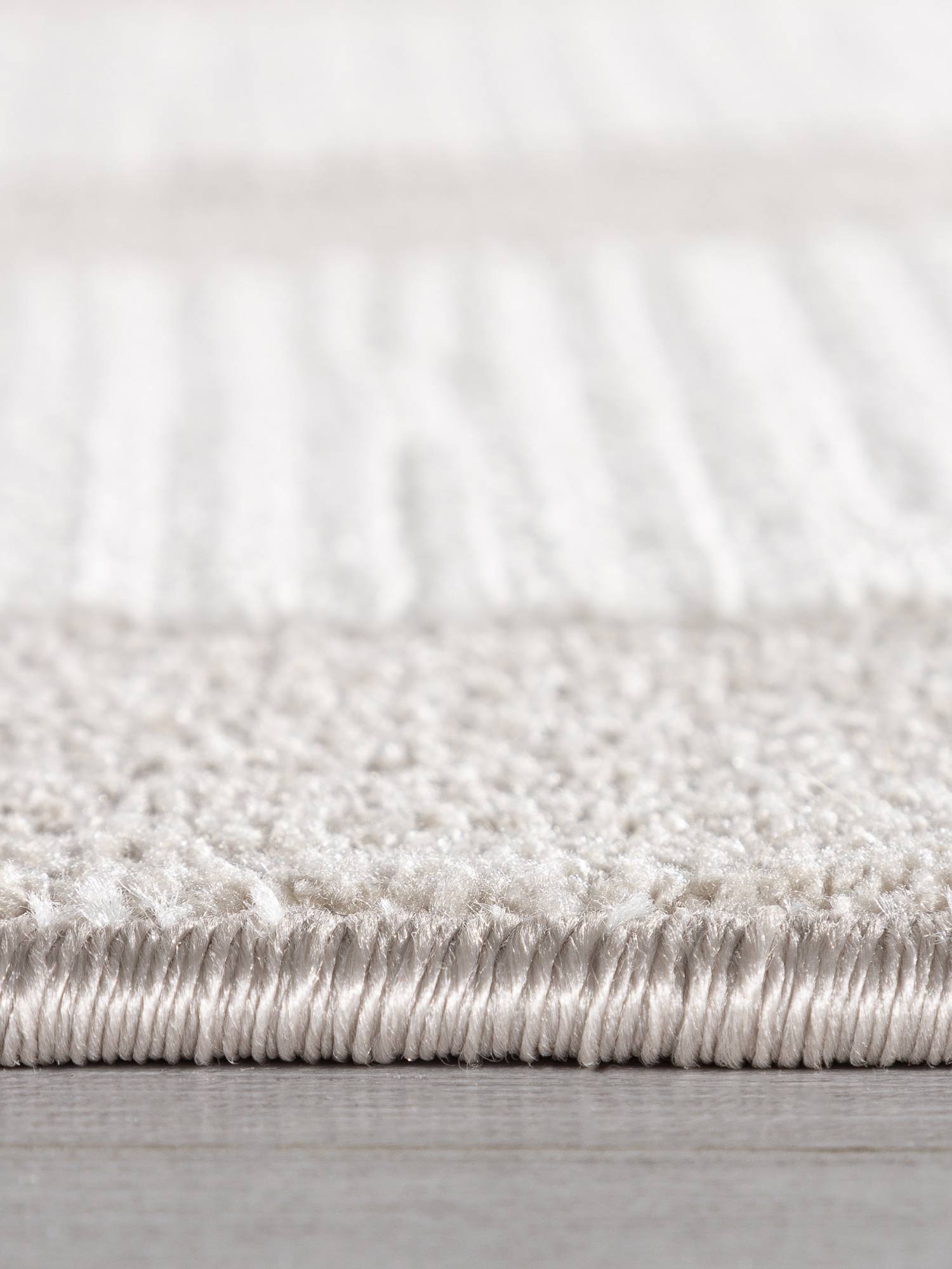 Интересный светлый ковер который благодаря своему дизайну хорошо подойдет для гостиной или спальни.