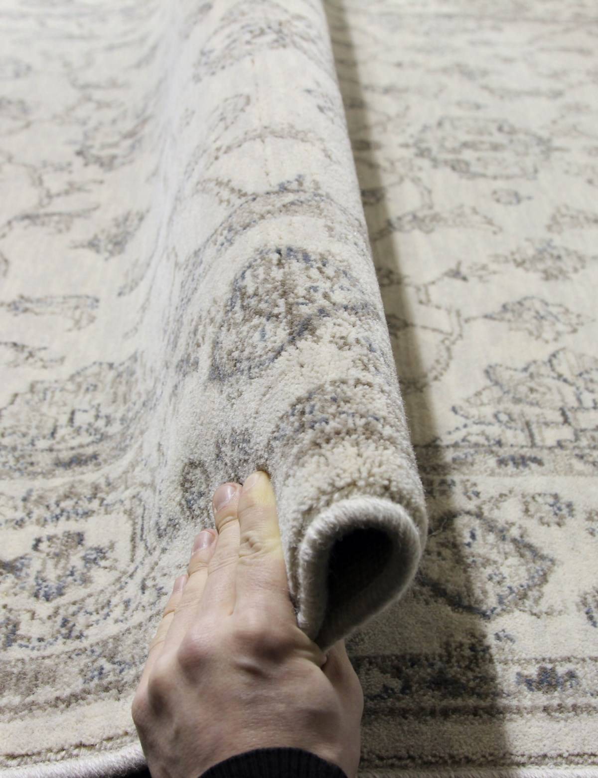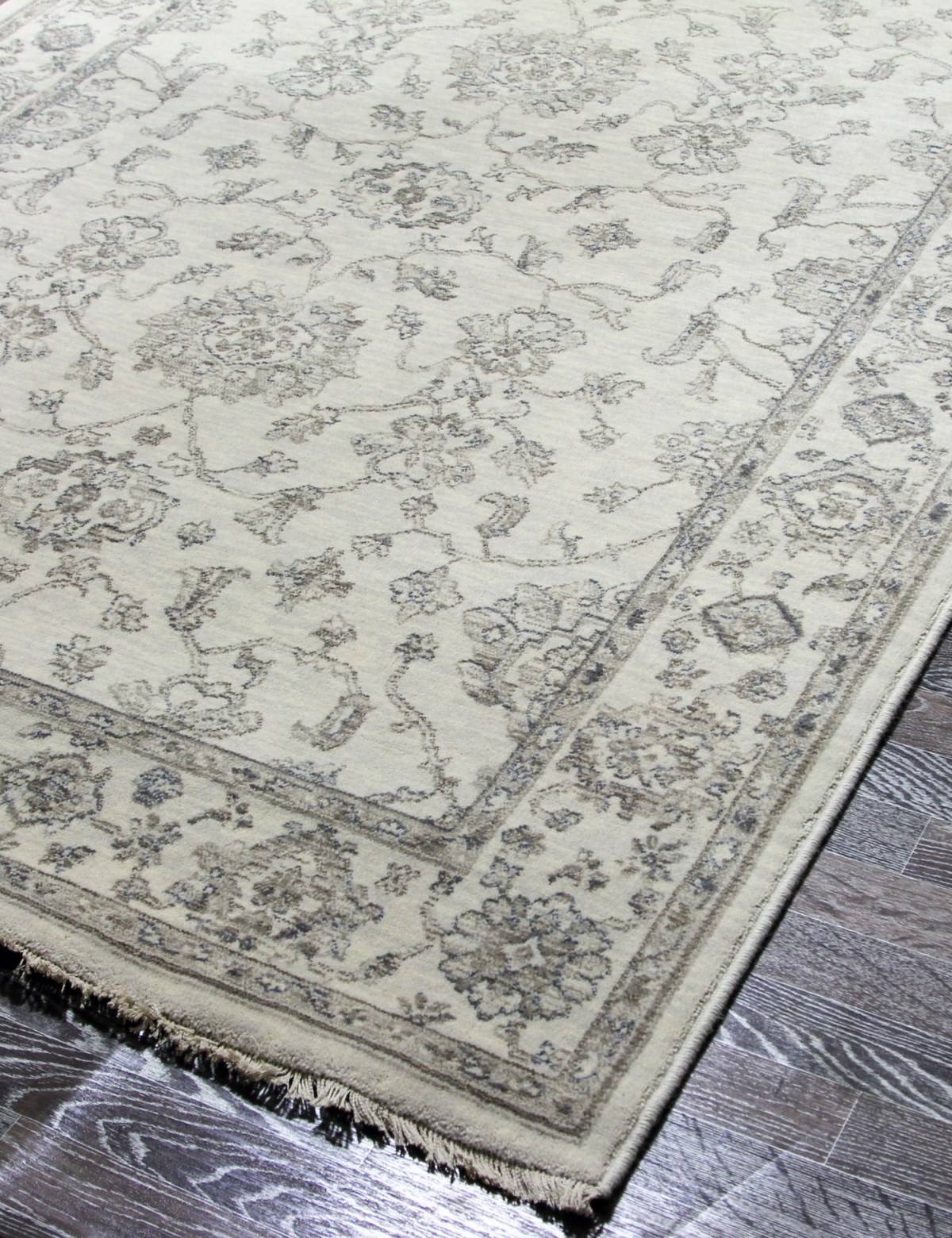 Светлая серая расцветка, высокое качество изготовления и приятный ворс этого шерстяного ковра делают из него хорошее дополнение для любого современного интерьера.