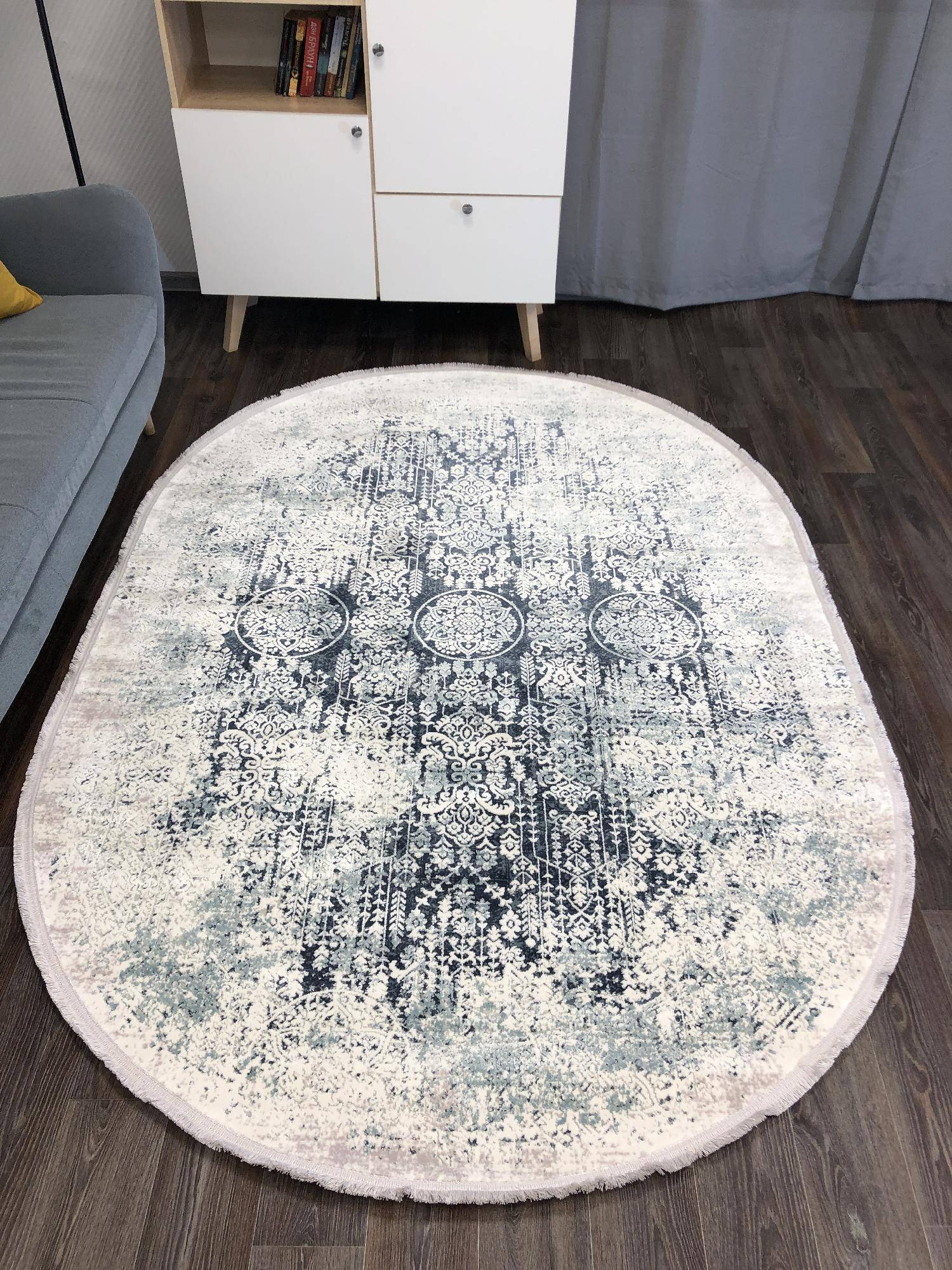 Модный овальный ковер в классическом стиле с оригинальной расцветкой с имитацией витражных потертост...