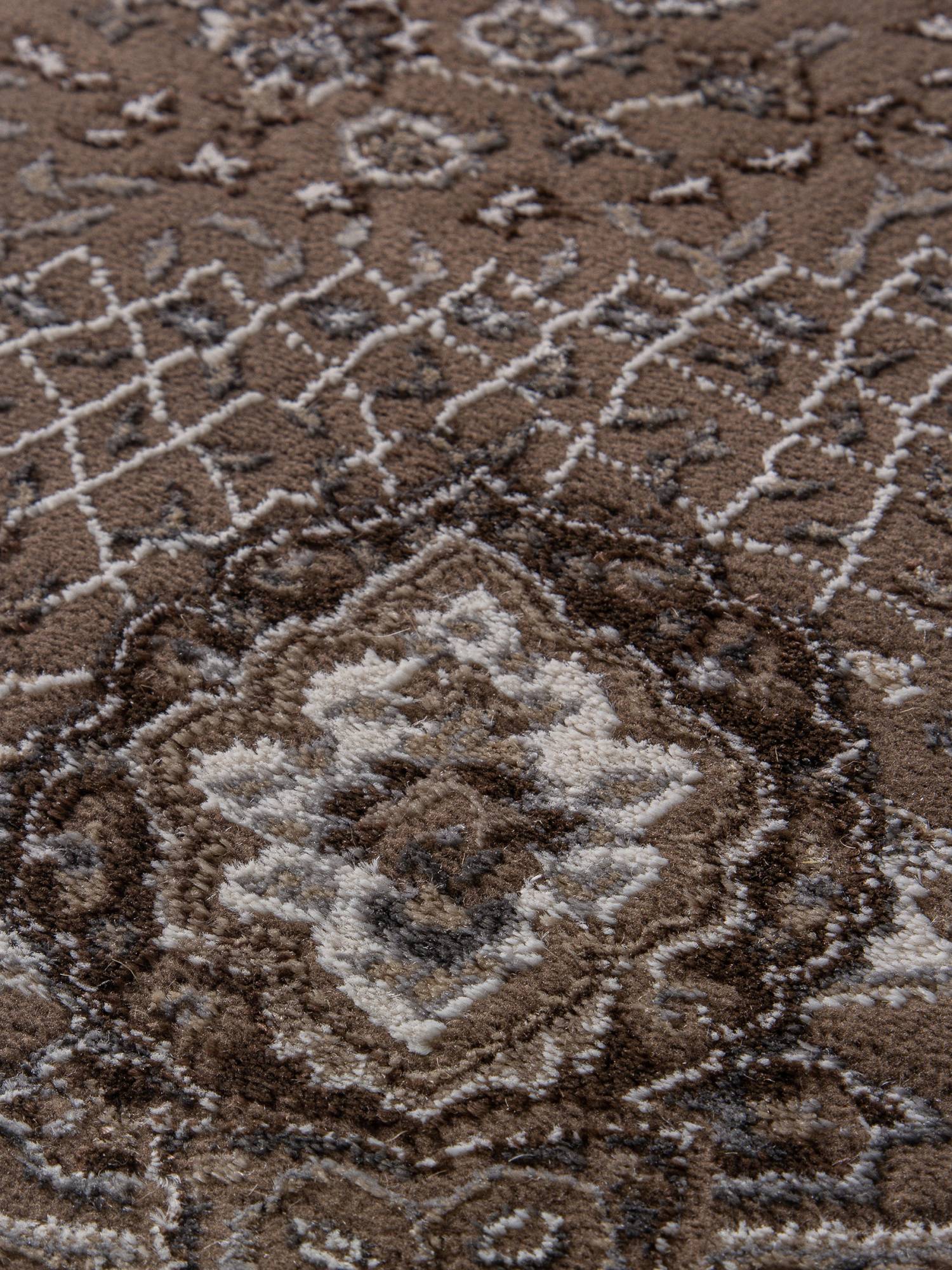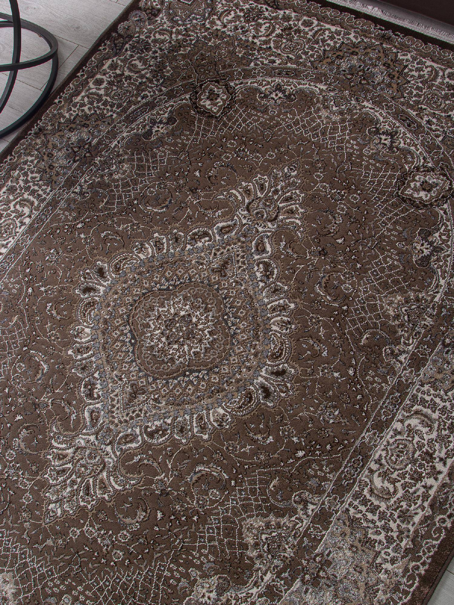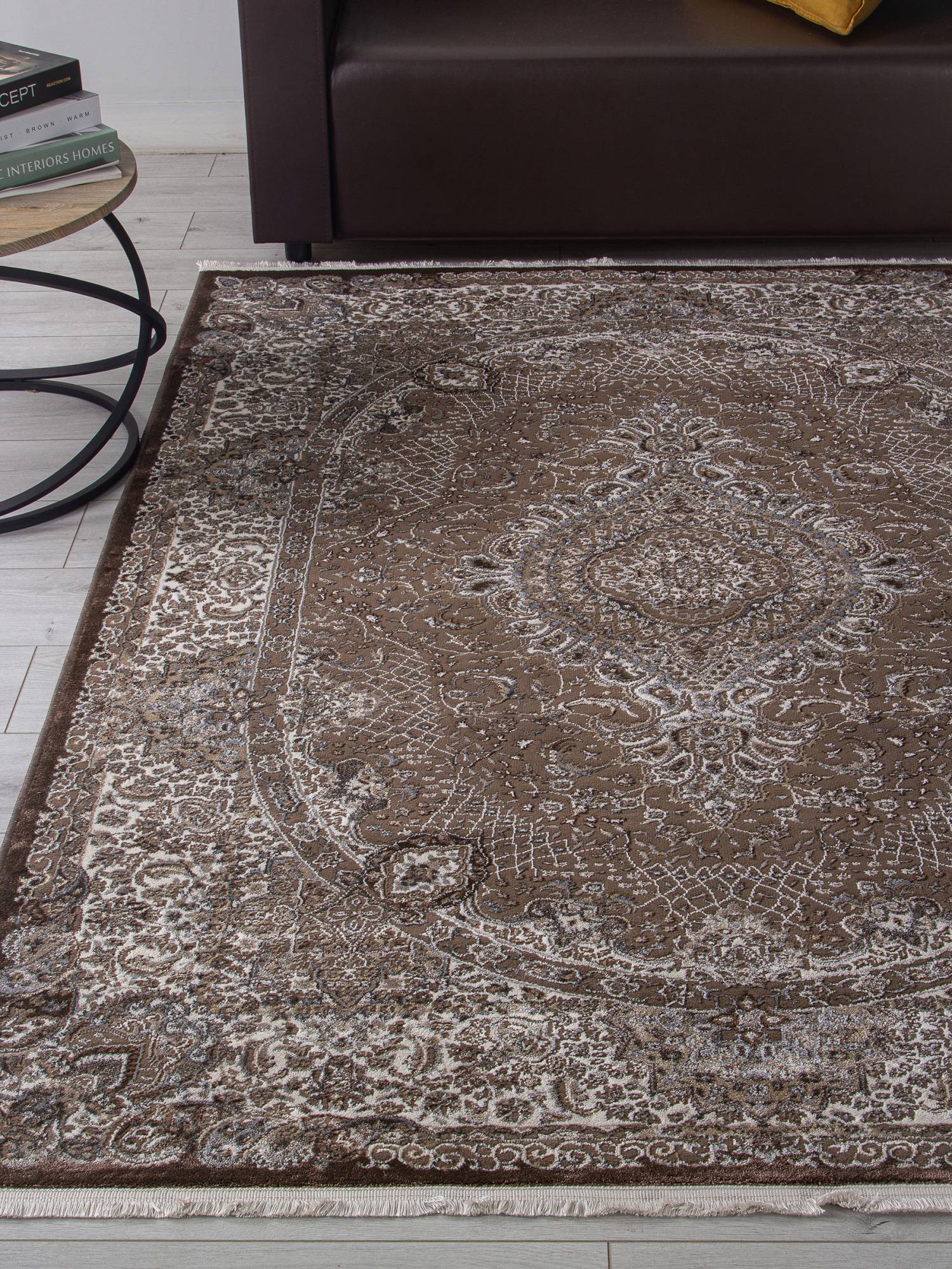 Темная, серо-коричневая расцветка и детализированный орнамент позволяют этому ковру стать хорошим дополнением для интерьера вашего дома.