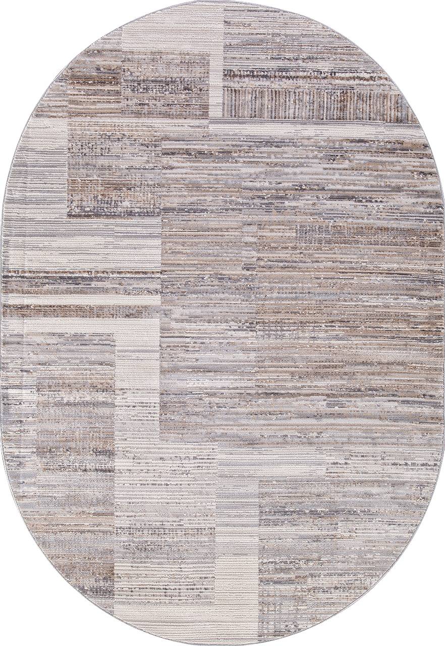 Современный дизайн с геометрическими элементами и приятная светлая расцветка, а также овальная форма делают этот ковер стильным украшением для любого интербера.