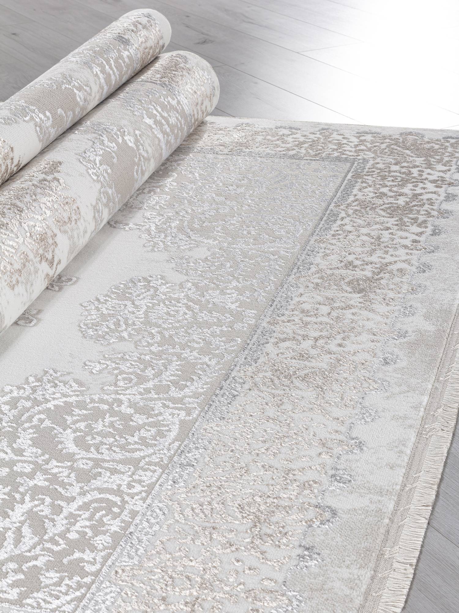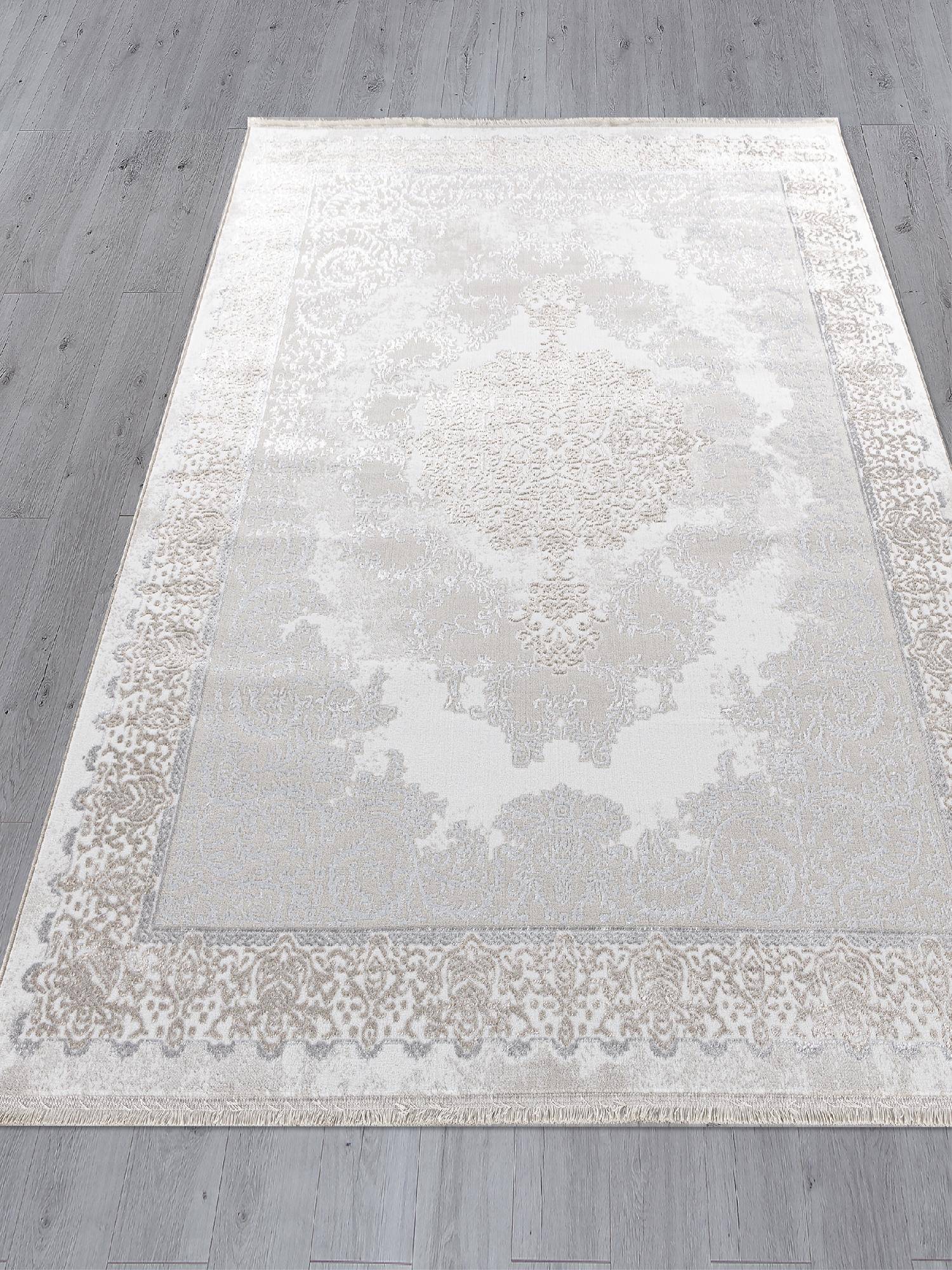 Красивый ковер в классическом дизайне и в расцветке в светлых тонах. Это ковровое изделие будет интересным дополнением к интерьеру вашего зала.