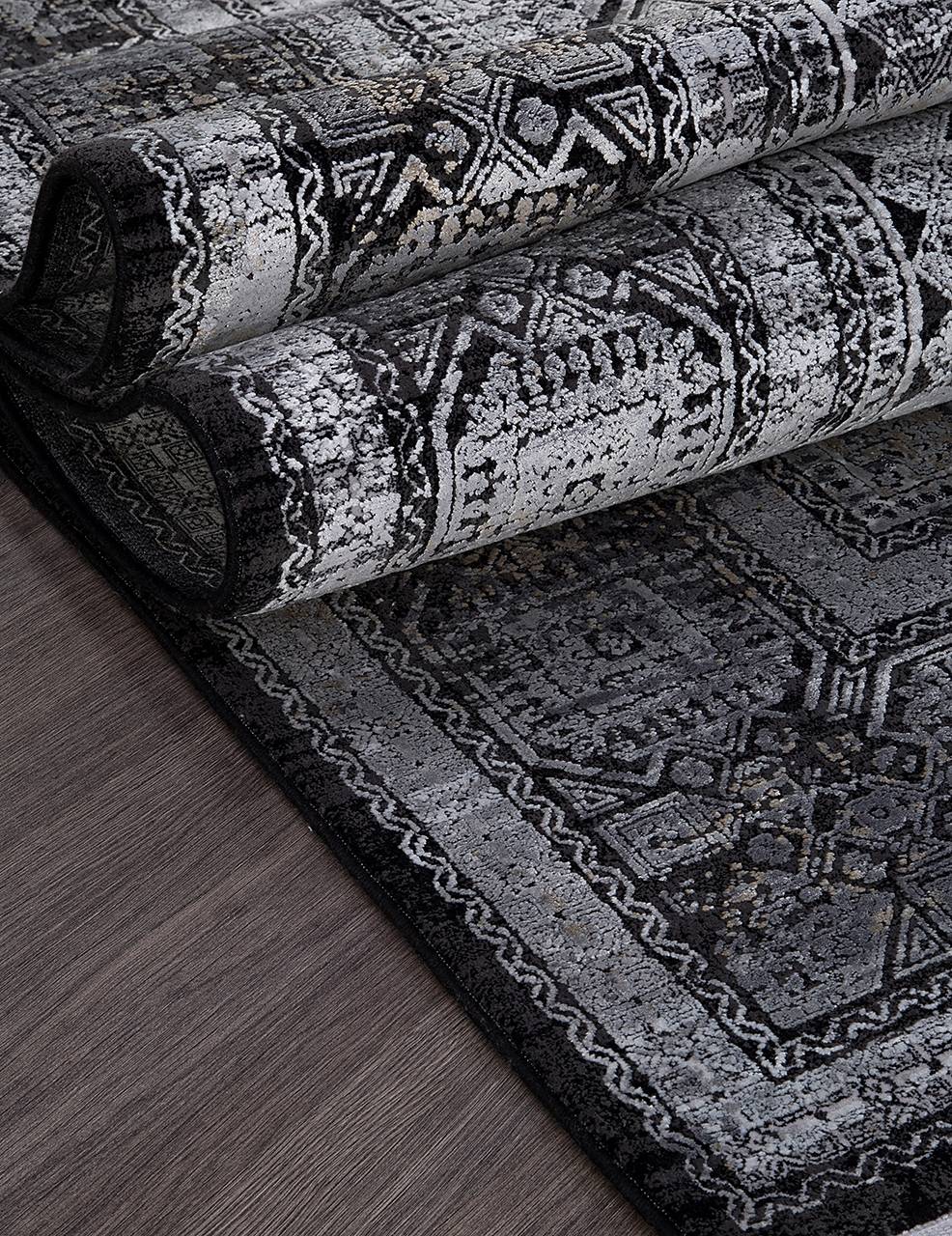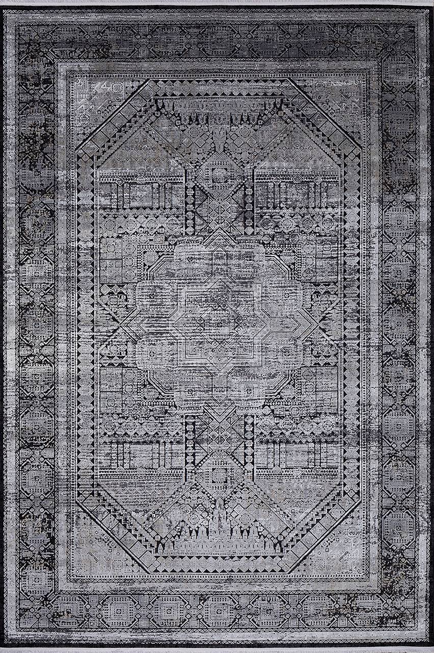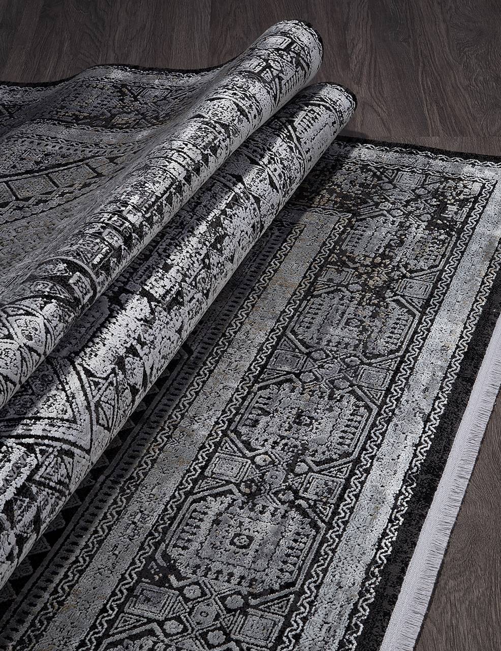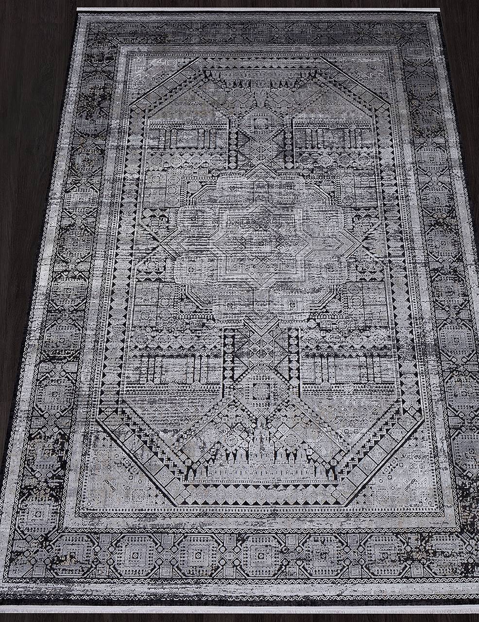 Стильная, модная серо-черная расцветка и подробный детализированный орнамент этого ковра способны украсить любой интерьер, отлично дополняя его или ставя свои собственные акценты.