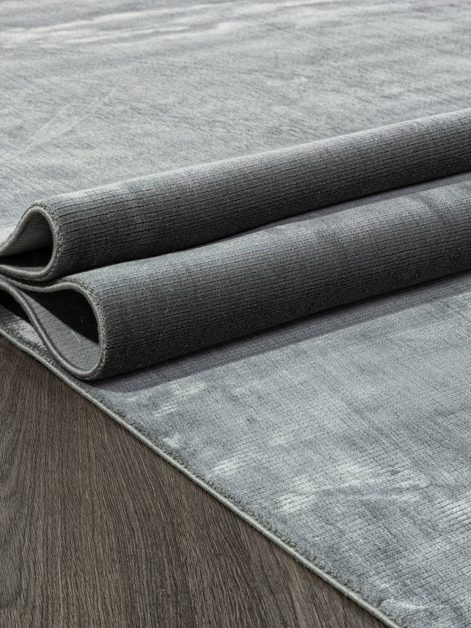 Однотонная темно-серая расцветка и приятный материал изготовления позволяют этому ковру стать хорошим дополнением для интерьера вашего дома
