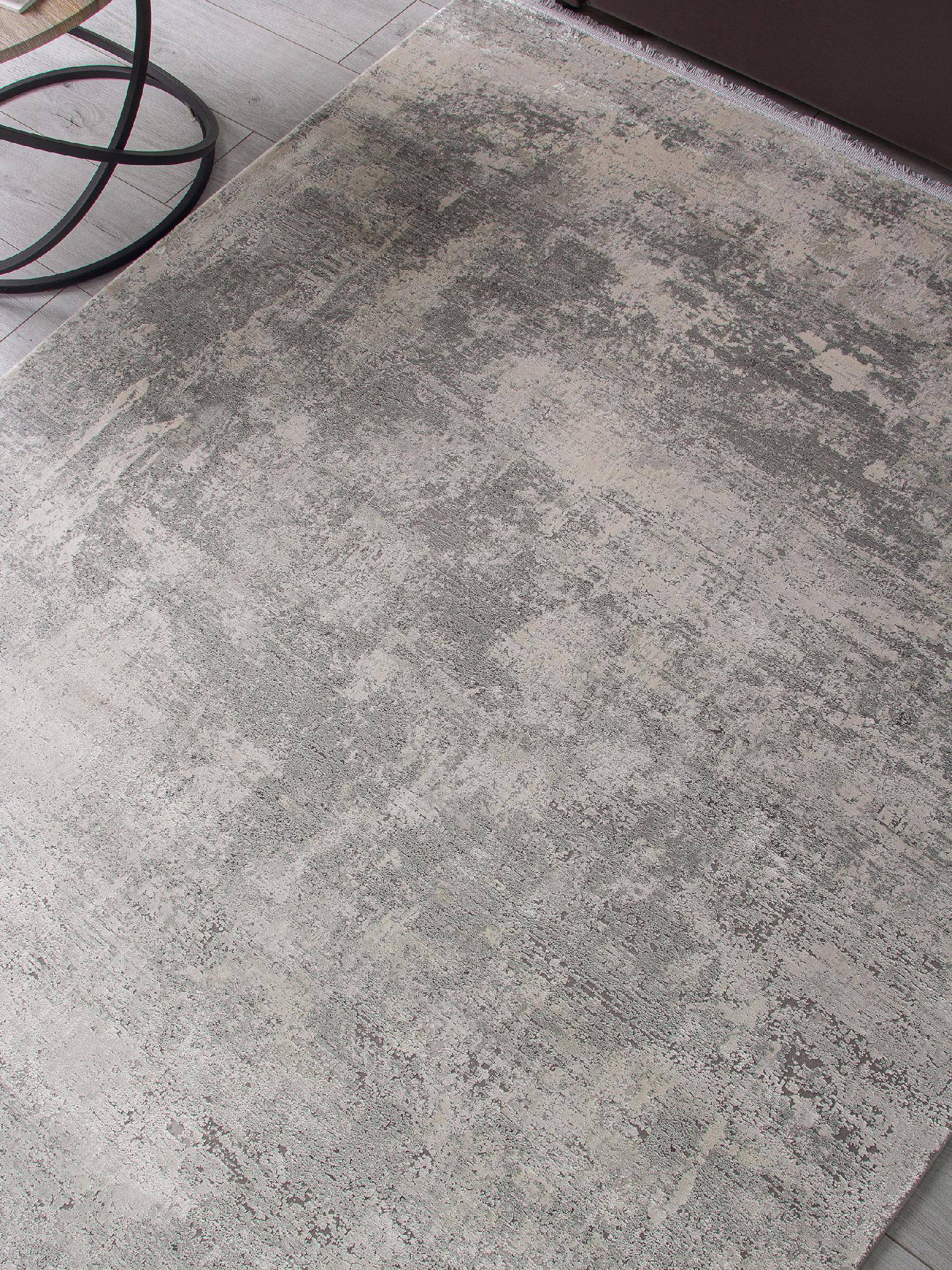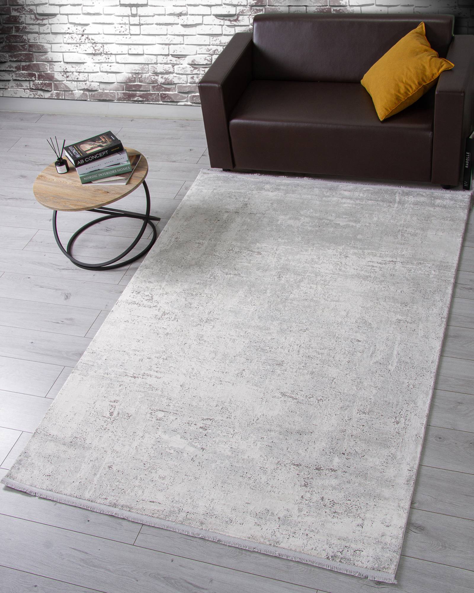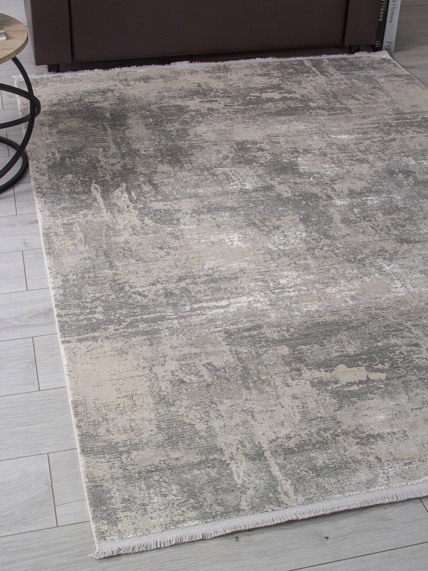 Интересный, гранжевый рисунок в приятной серой расцветке. Такой ковер хорошо подойдет для интерьера гостиной, зала или спальни.