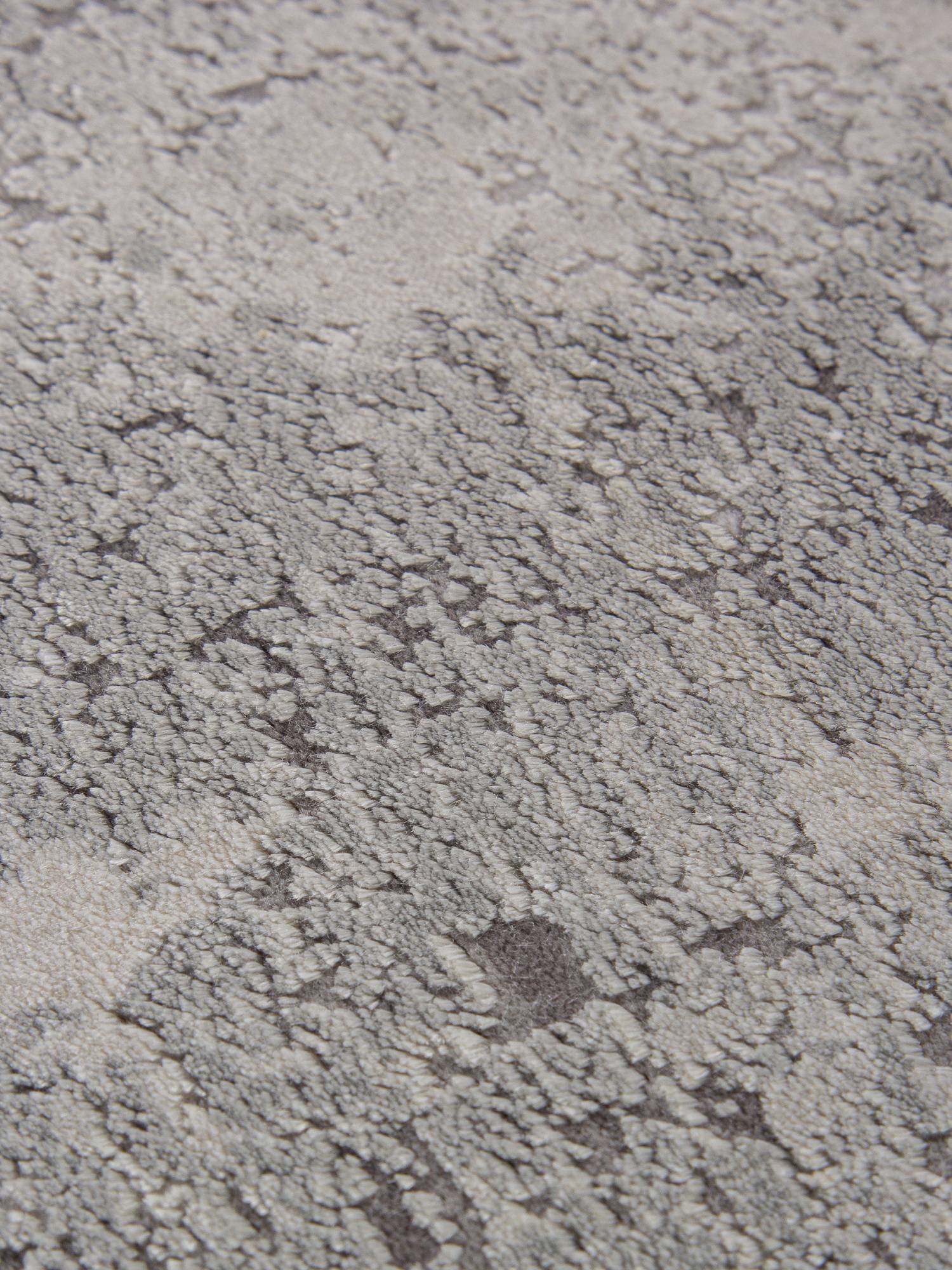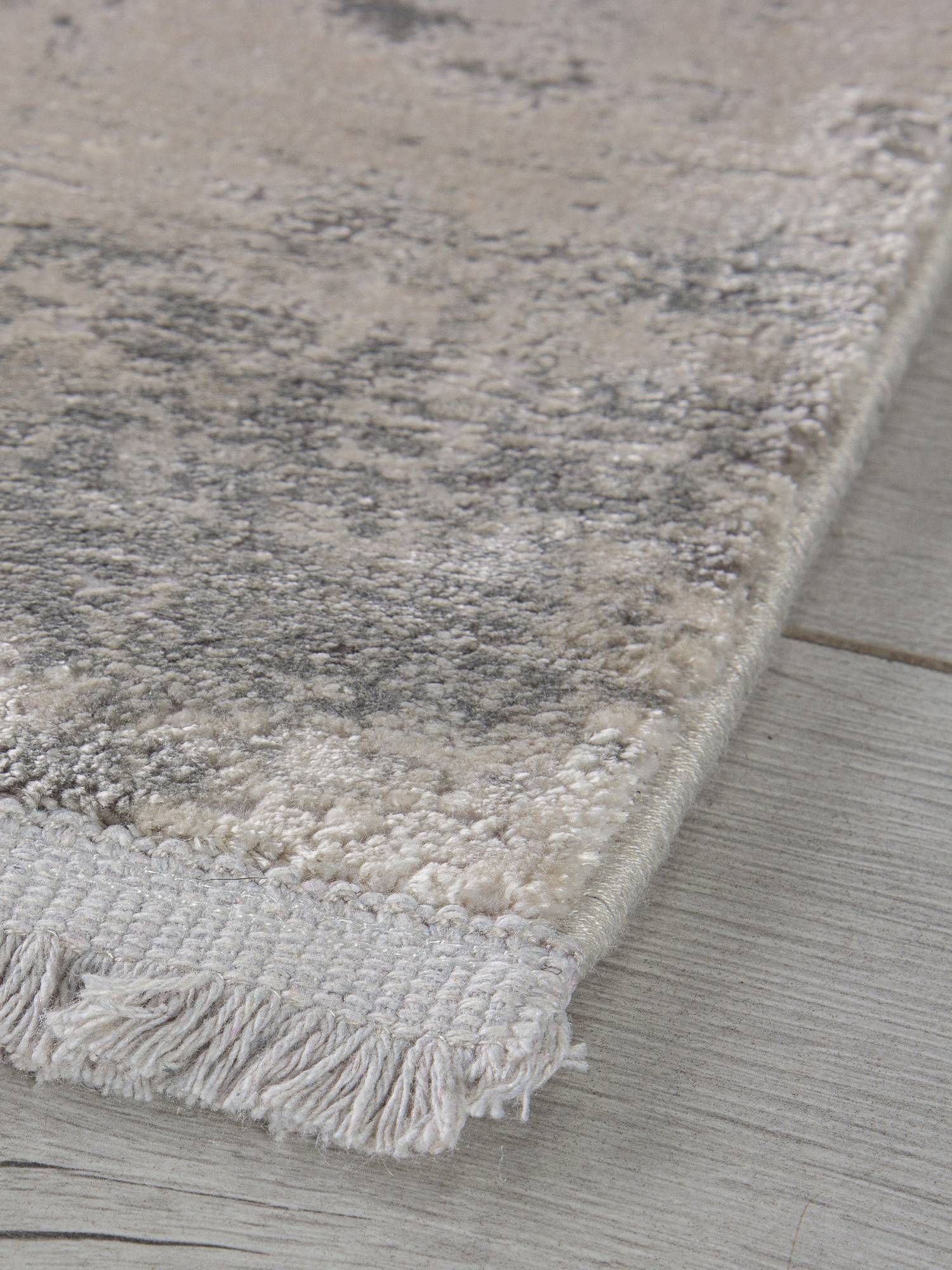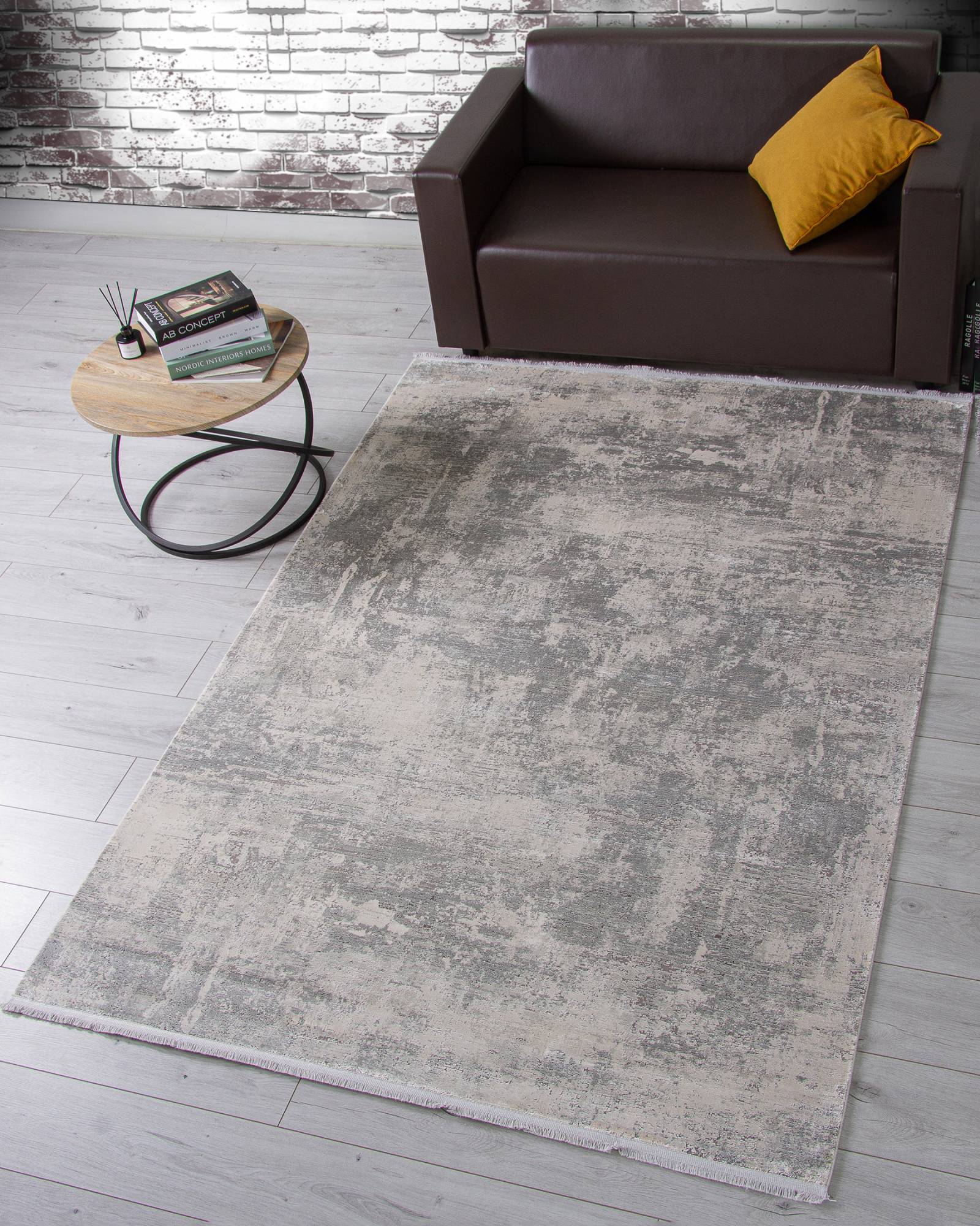 Интересный, гранжевый рисунок в приятной серой расцветке. Такой ковер хорошо подойдет для интерьера гостиной, зала или спальни.