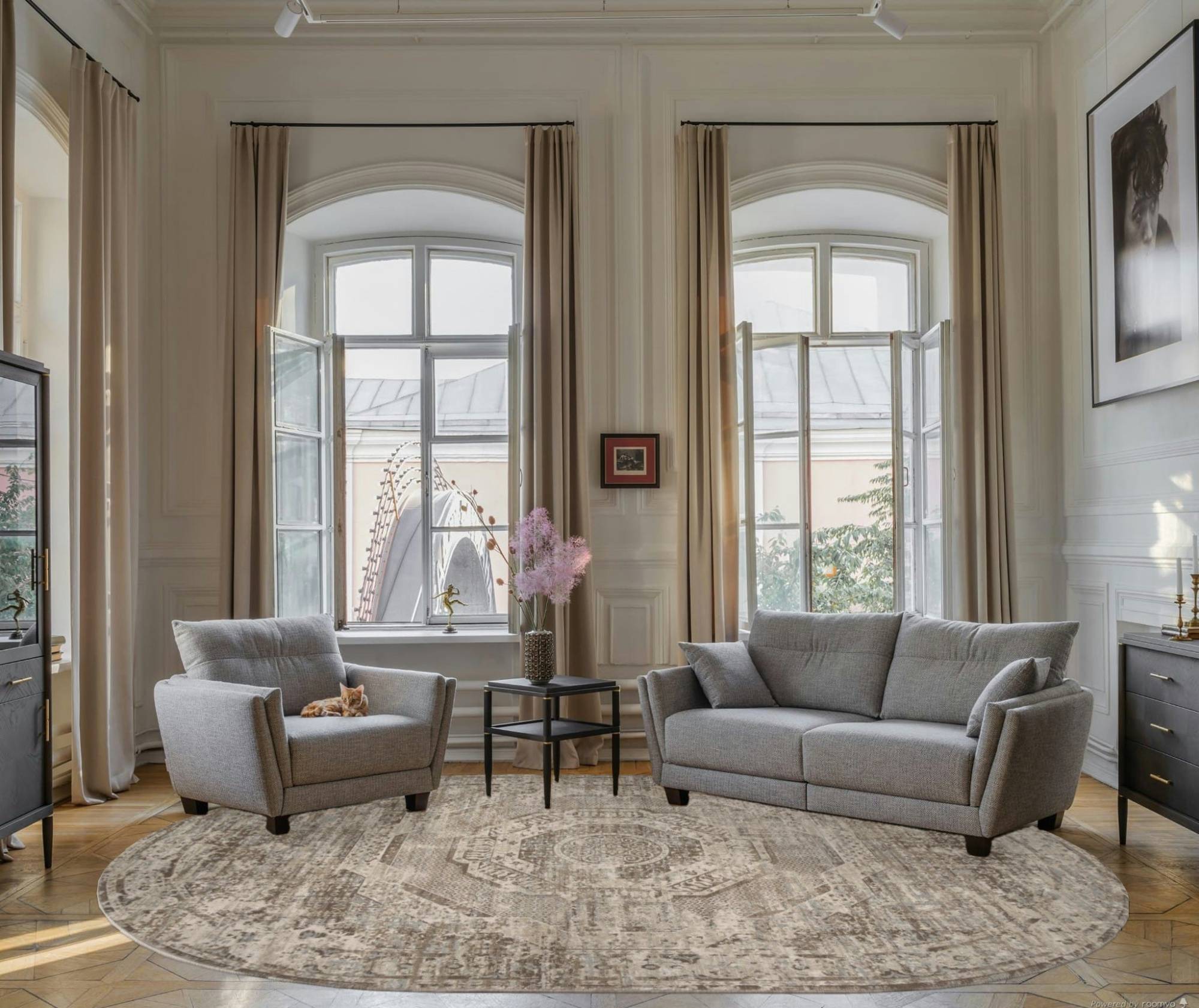 Красивый классический ковер в винтажном стиле. Модная овальная форма и и высокое качество изготовления позволяют этому ковру стать стильным дополнением для интерьера вашего дома.