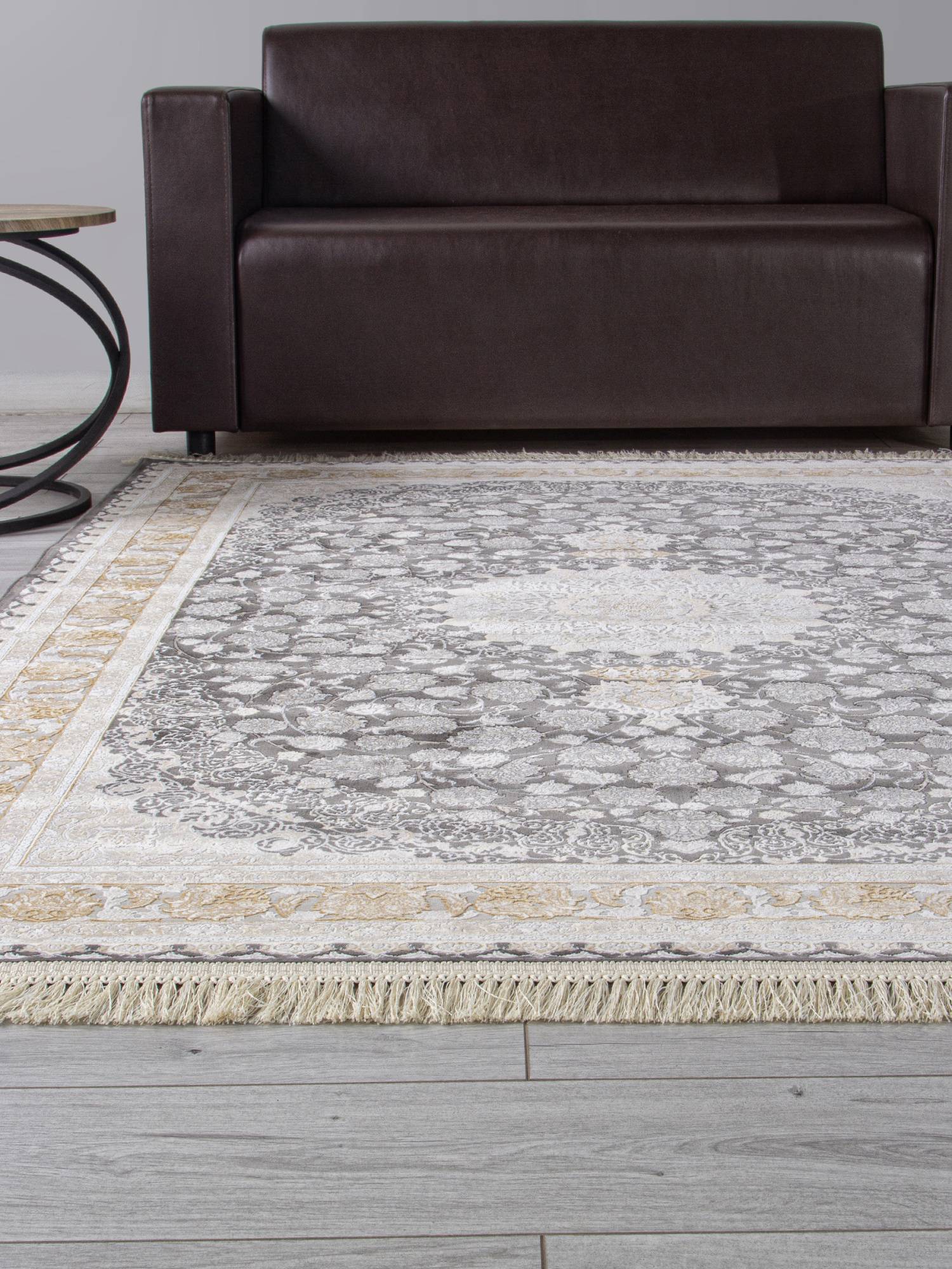 Интересный ковер с красивым орнаментом и приятной расцветкой в серо-бежево-коричневом тоне позволяют этому ковру стать стильным дополнением для интерьера вашего дома.