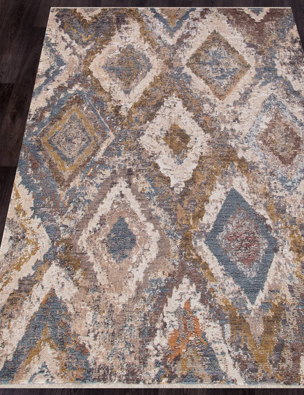 Интересный рисунок из искаженных ромбов в оригинальной расцветке и высокое качество изготовления позволяют этому ковру стать хорошим дополнением к любой комнате в вашем доме.