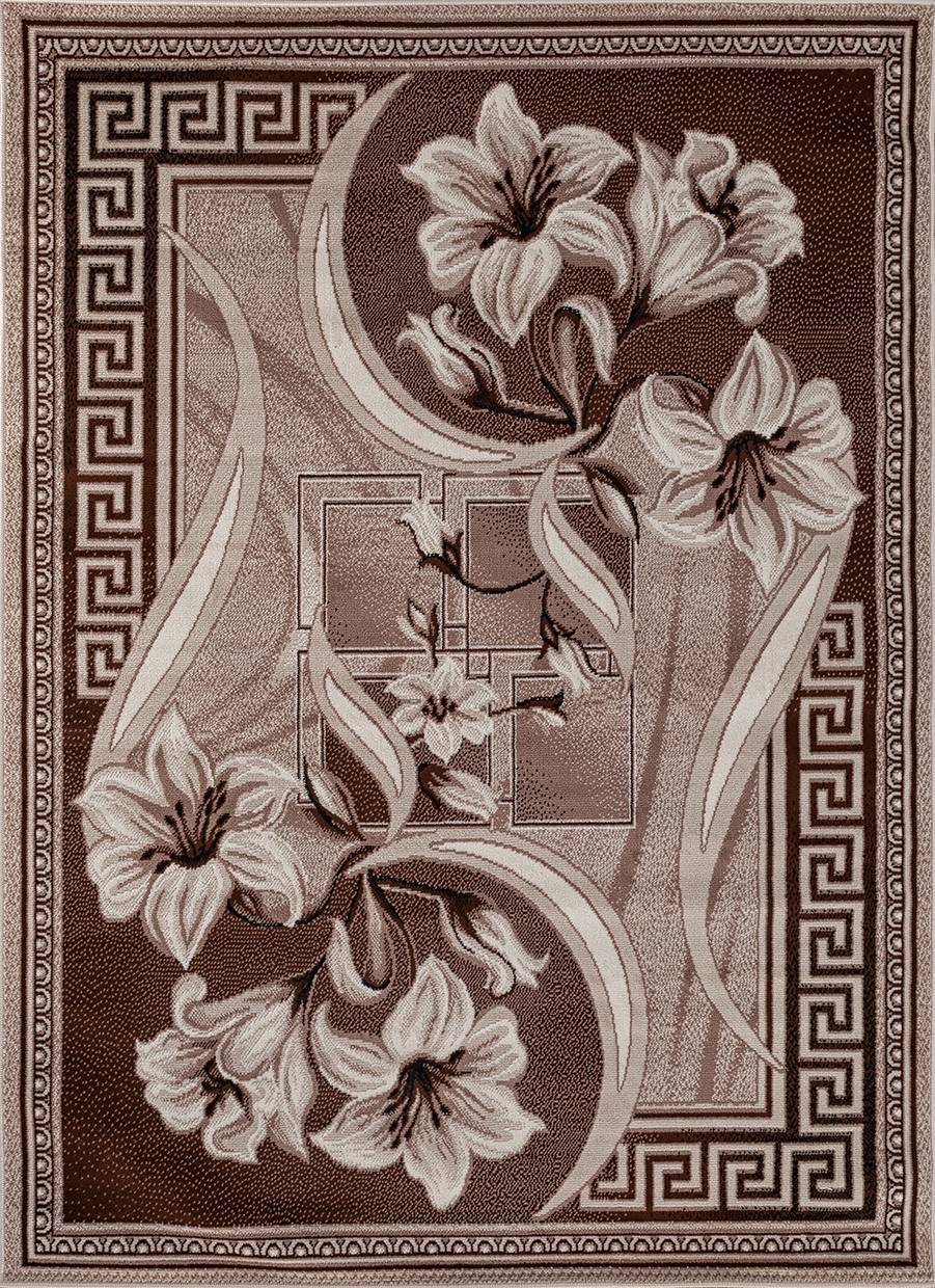 Красивый цветочный рисунок дополняется геометрическими элементами, что позволяет этому недорогому ковру стать красивой деталью интерьера, а большое разнообразие размеров позволит подобрать этот ковер комнату практически любого размера.