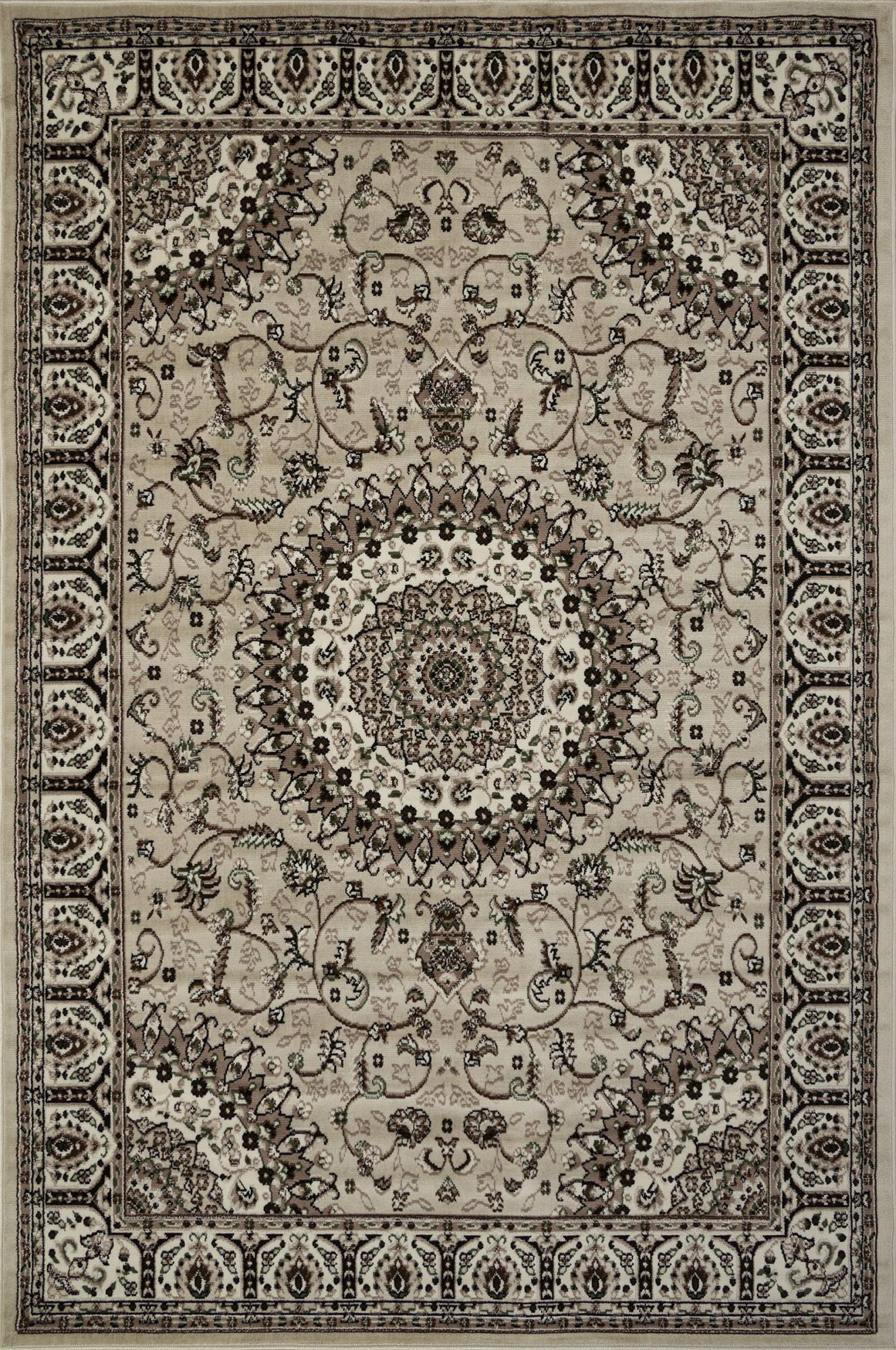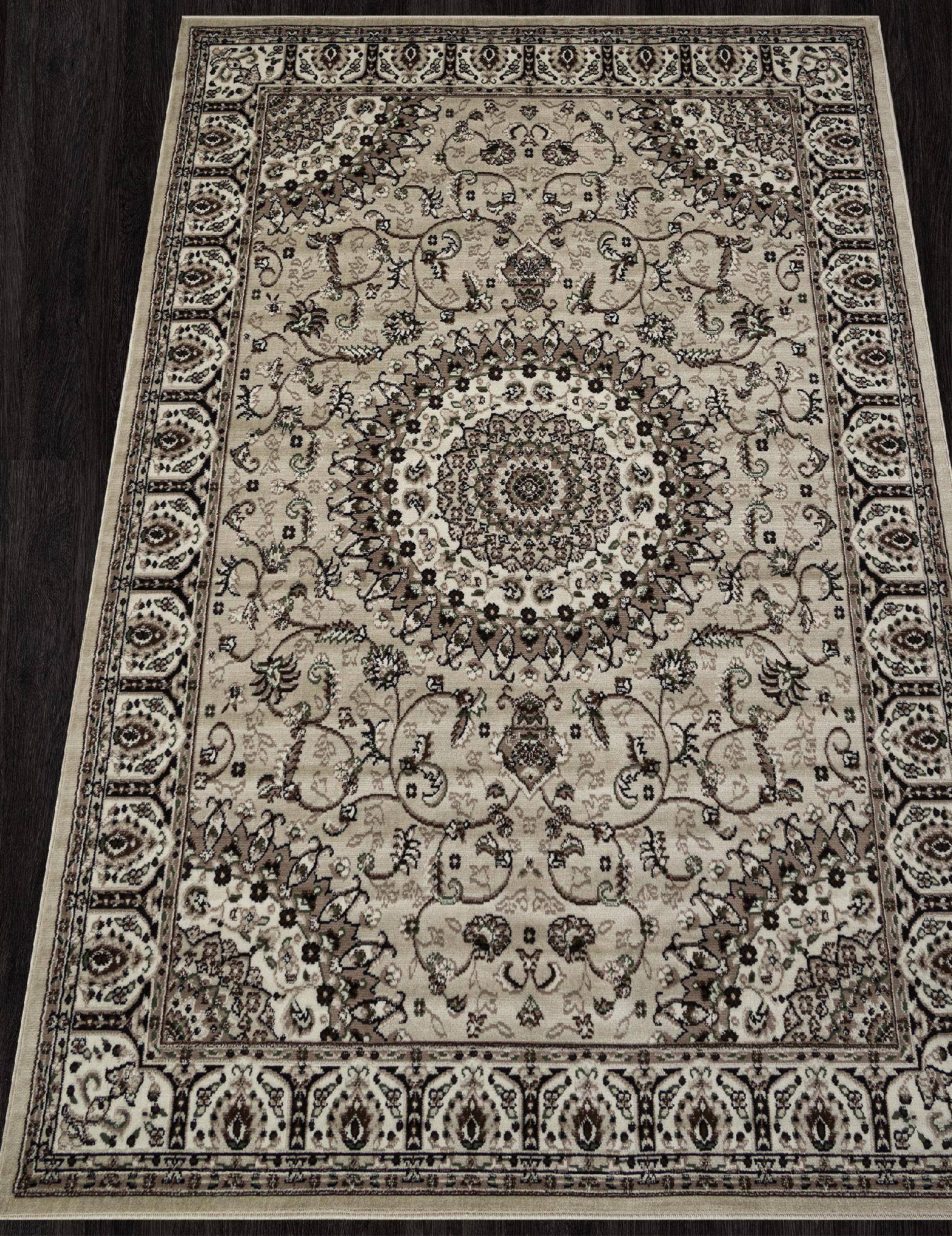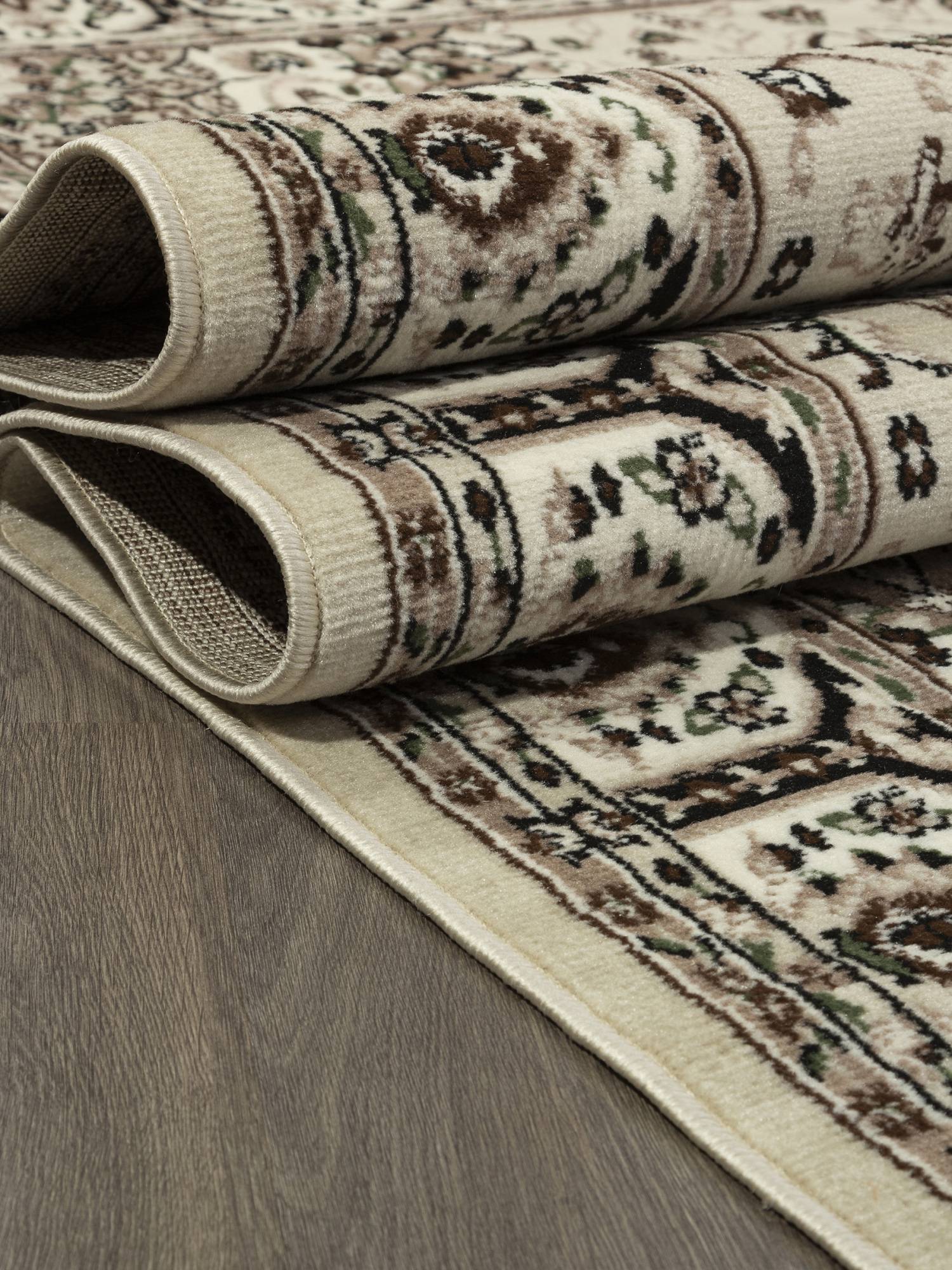 Серо-бежевая расцветка, орнамент в классическом стиле и высокое качество изготовления позволяют этому ковру стать стильным дополнением к любому современному интерьеру.